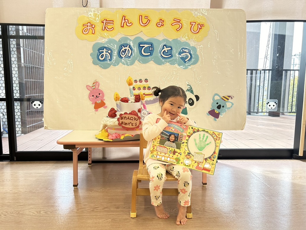 ずっと楽しみにしていた誕生会。みんなにおめでとうと言ってもらえてとても嬉しかったね!