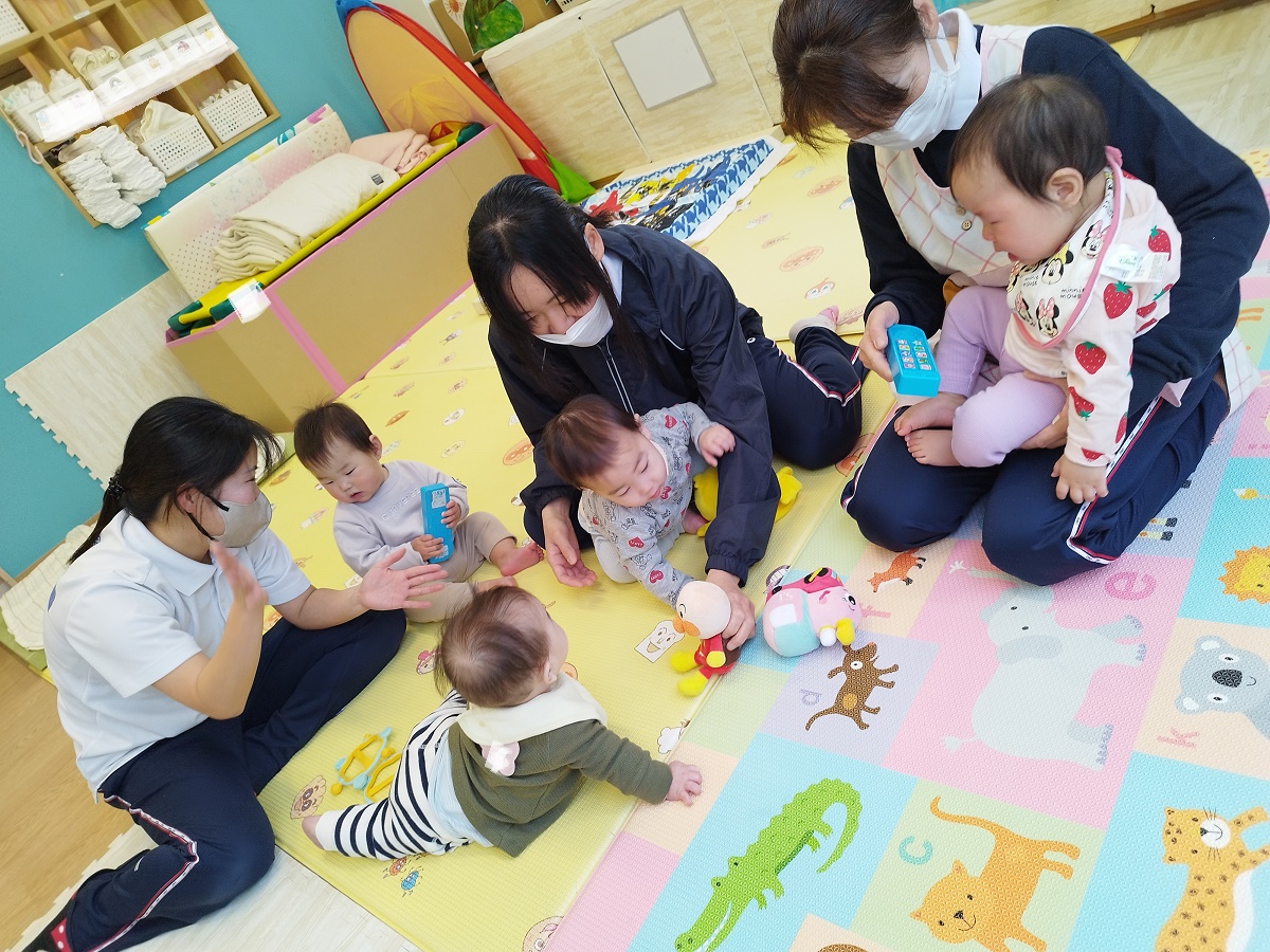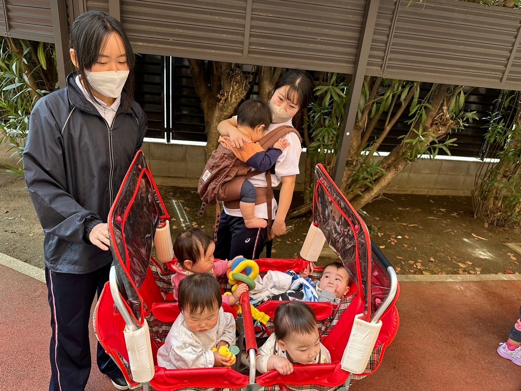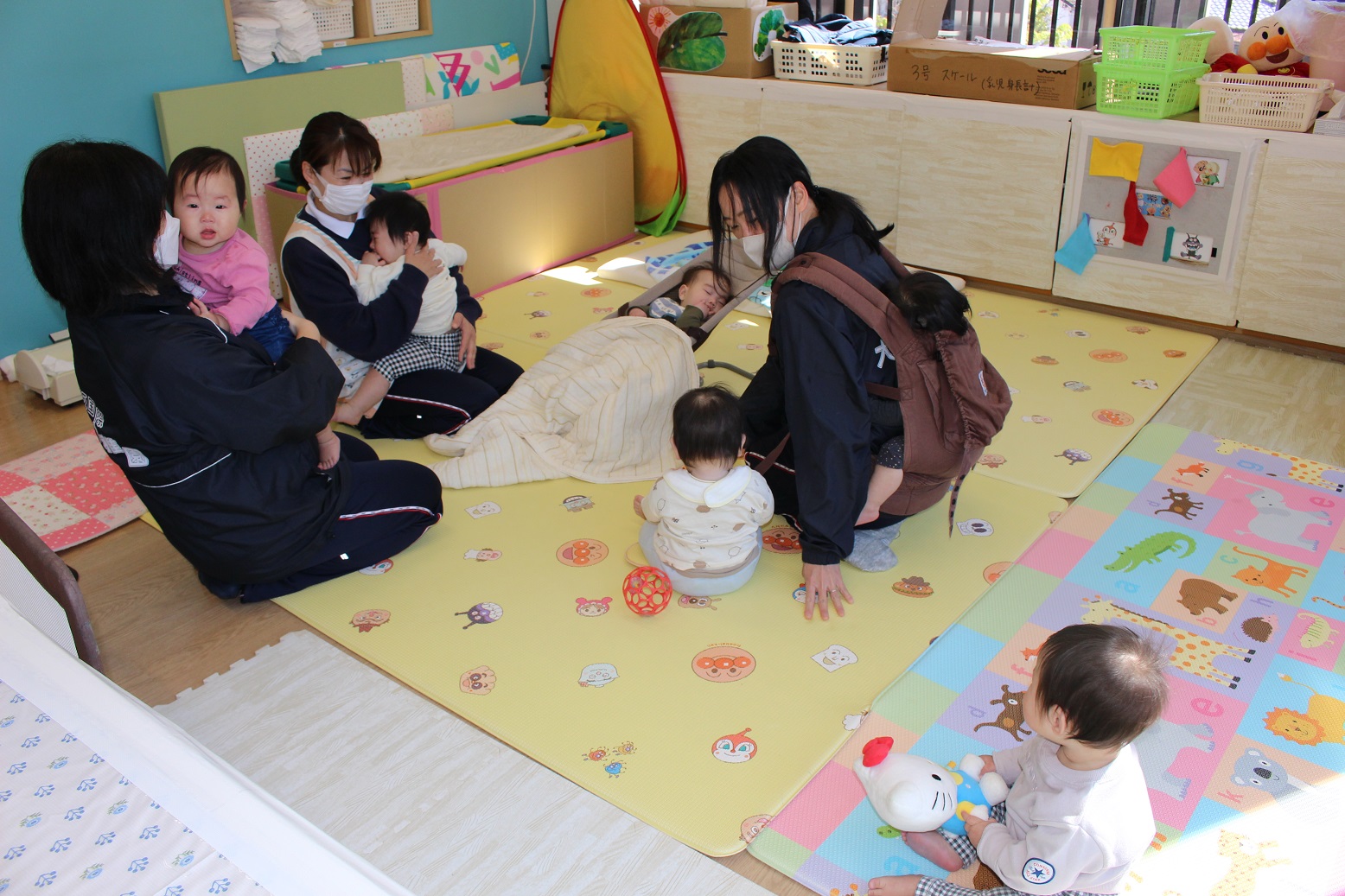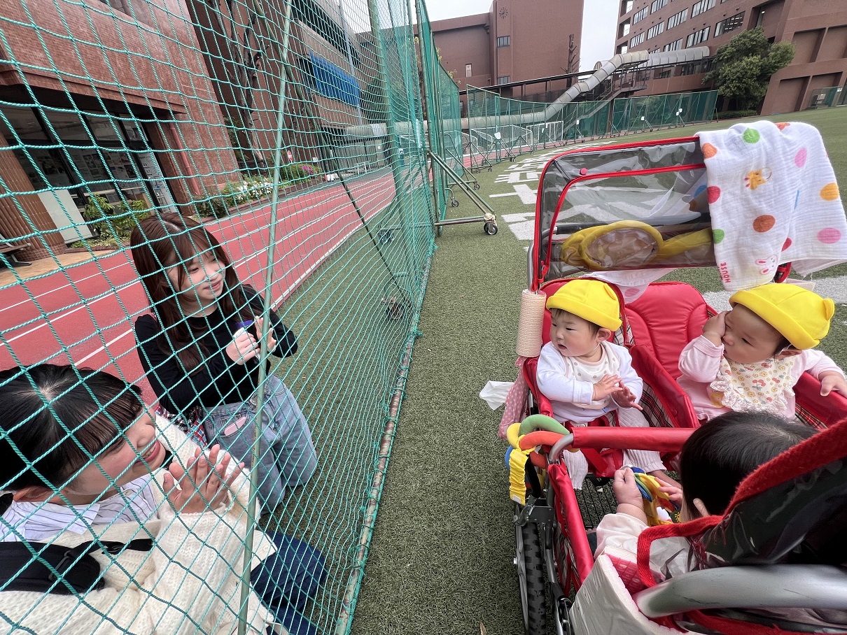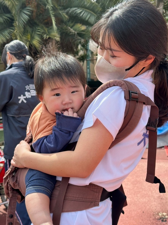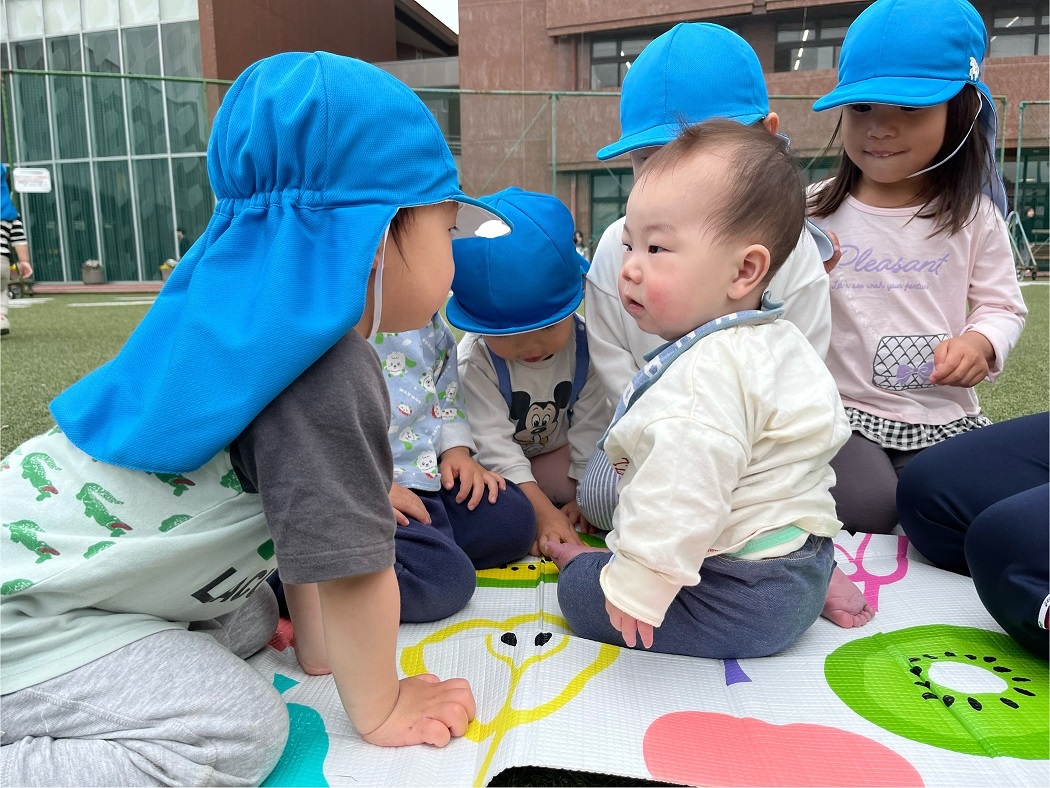 こあら組のお友だちには「はじめまして!」「かわいいね♪」と優しいお兄さんお姉さんなぱんだ組の子どもたちです♪
