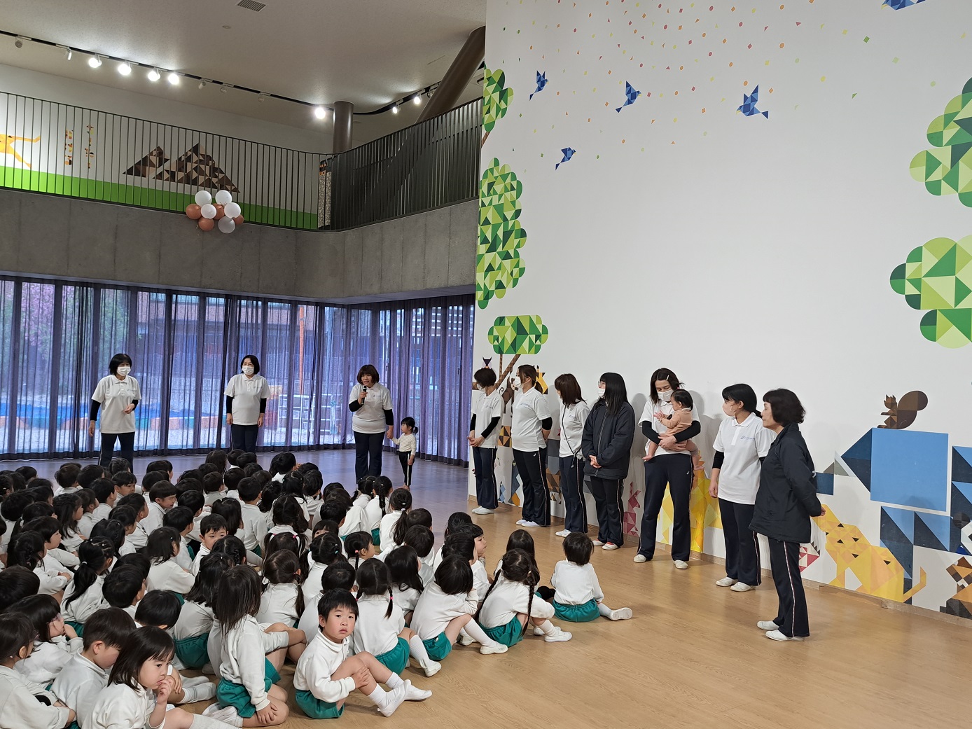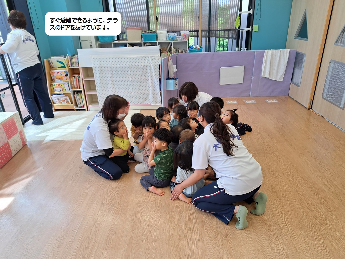 「困ったことがあったら、職員室にいくんだよ」 「ここは幼稚園のホールだよ!」