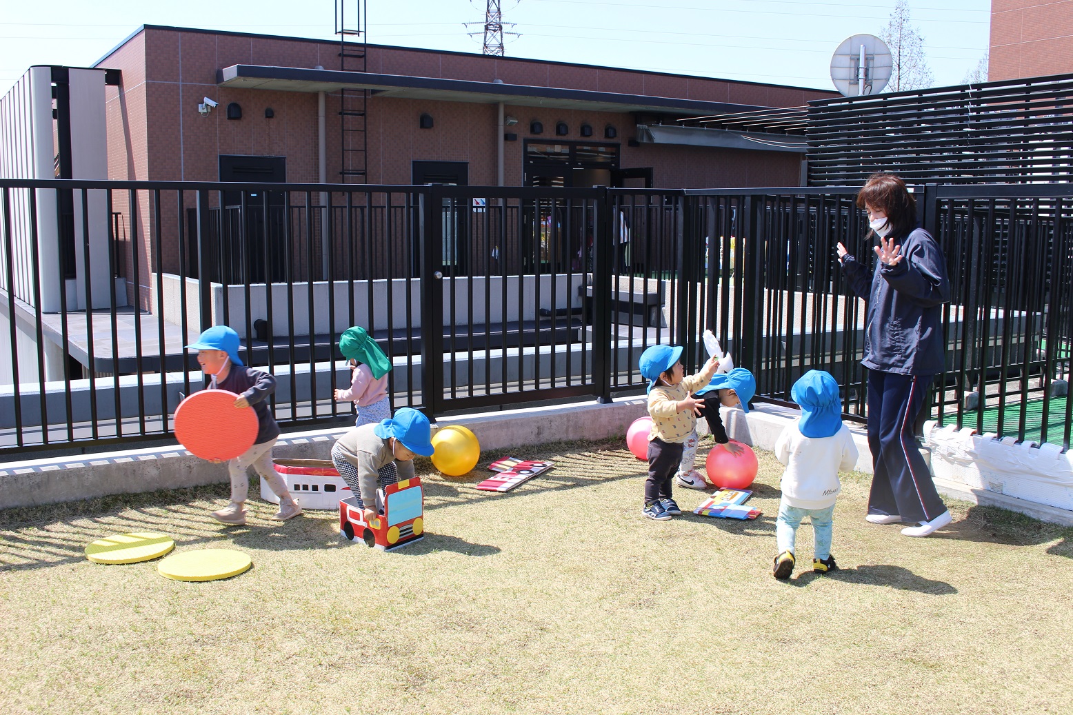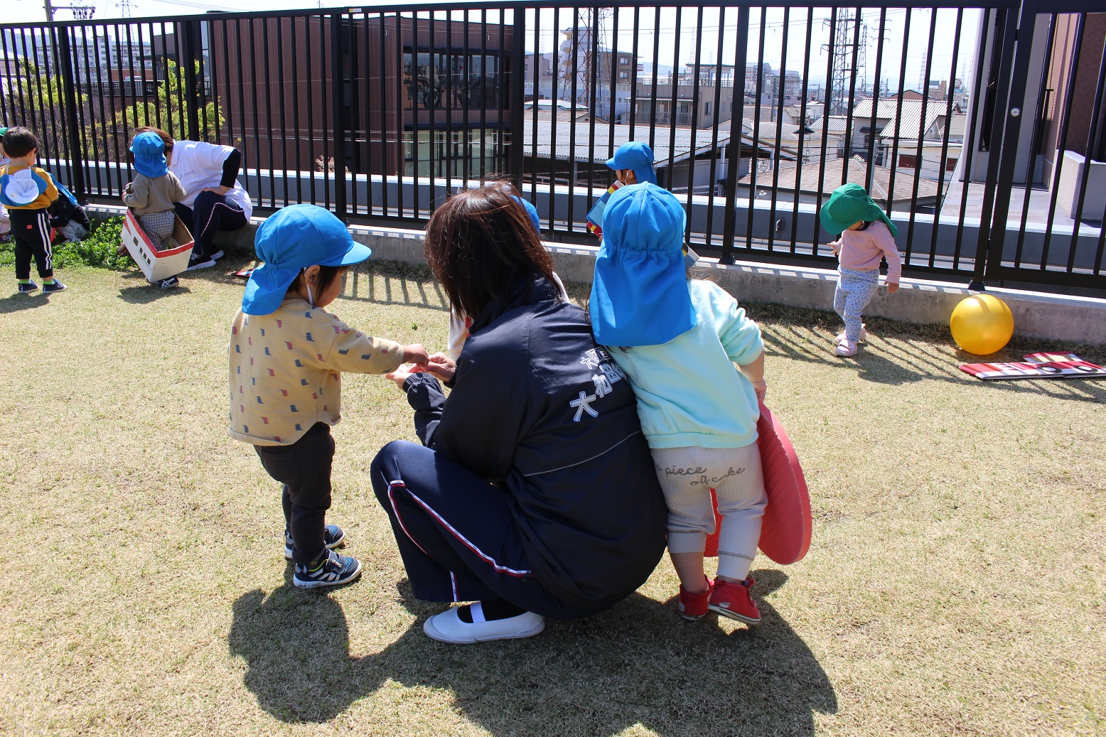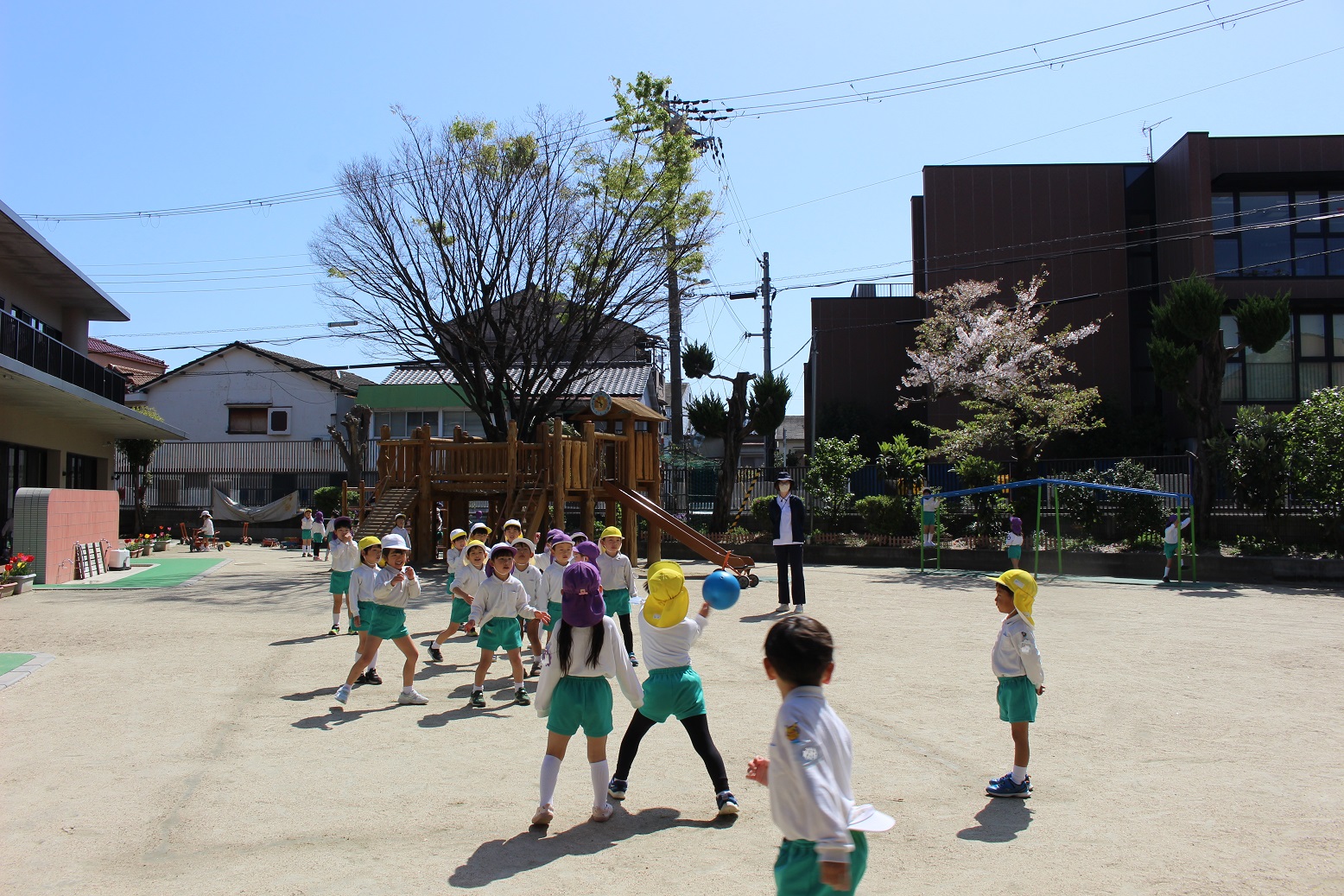 ↓年長組・年中組の子どもたちは青空の下で元気いっぱい遊びました!