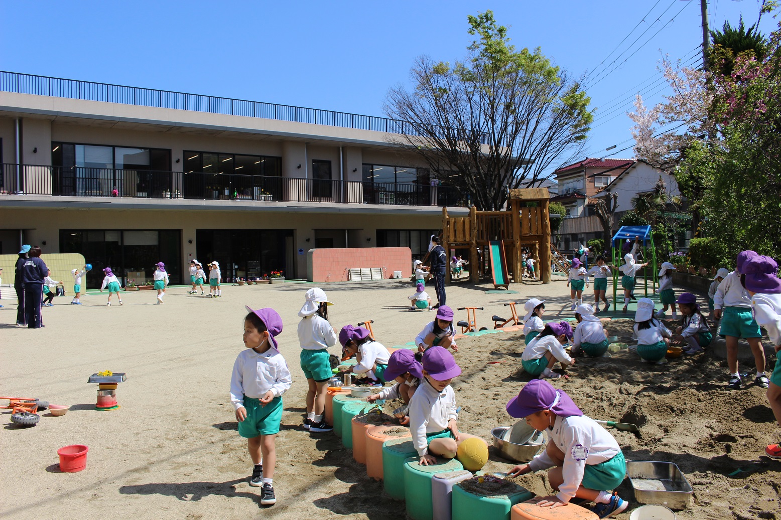 一気に気温が上がり、汗ばむほどの天気になってきた今週!たくさんお外に出て元気いっぱいに遊ぶ子どもたちです♪しっかりと水分補給をしながら遊びを楽しんでいます!
