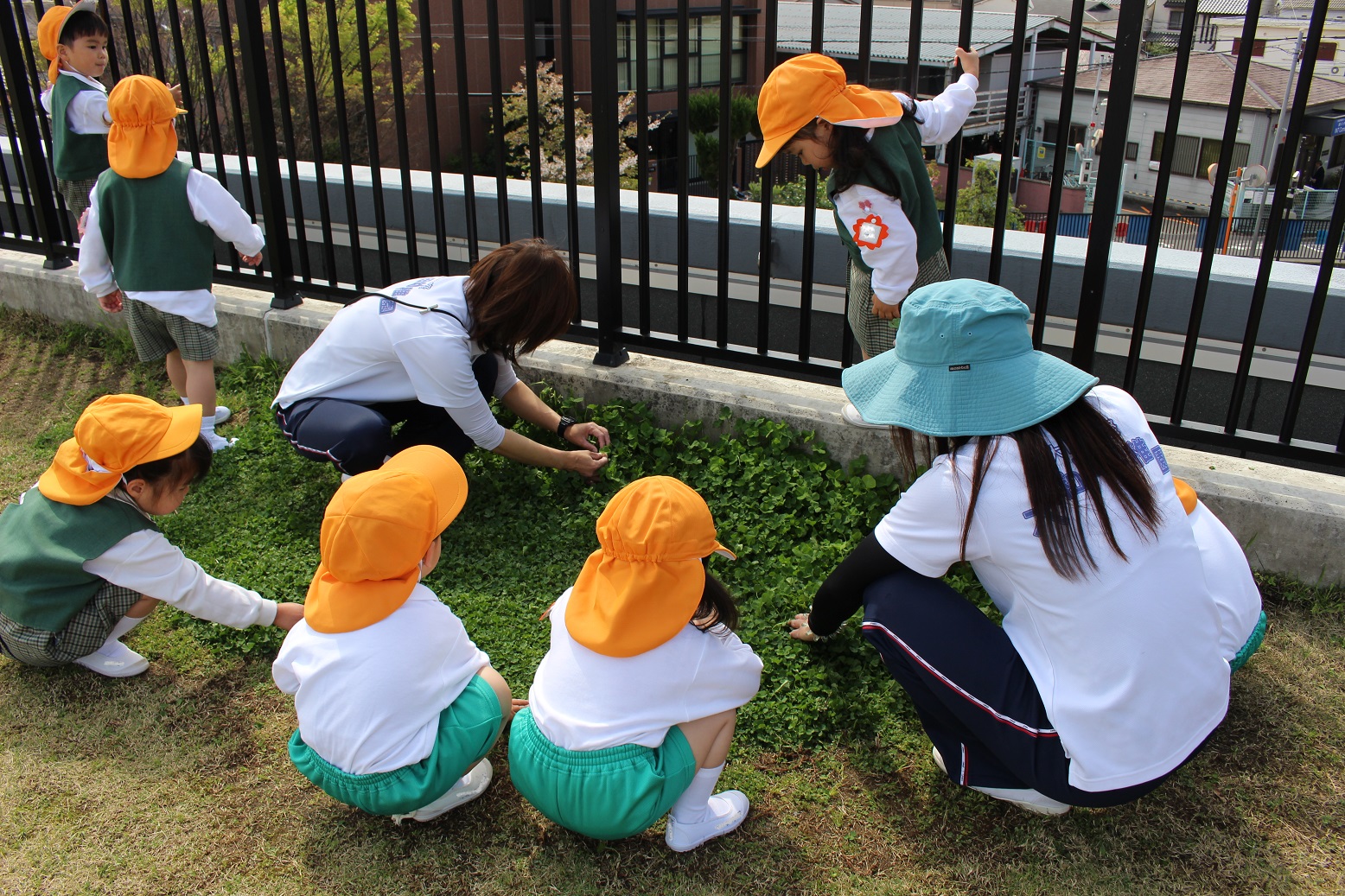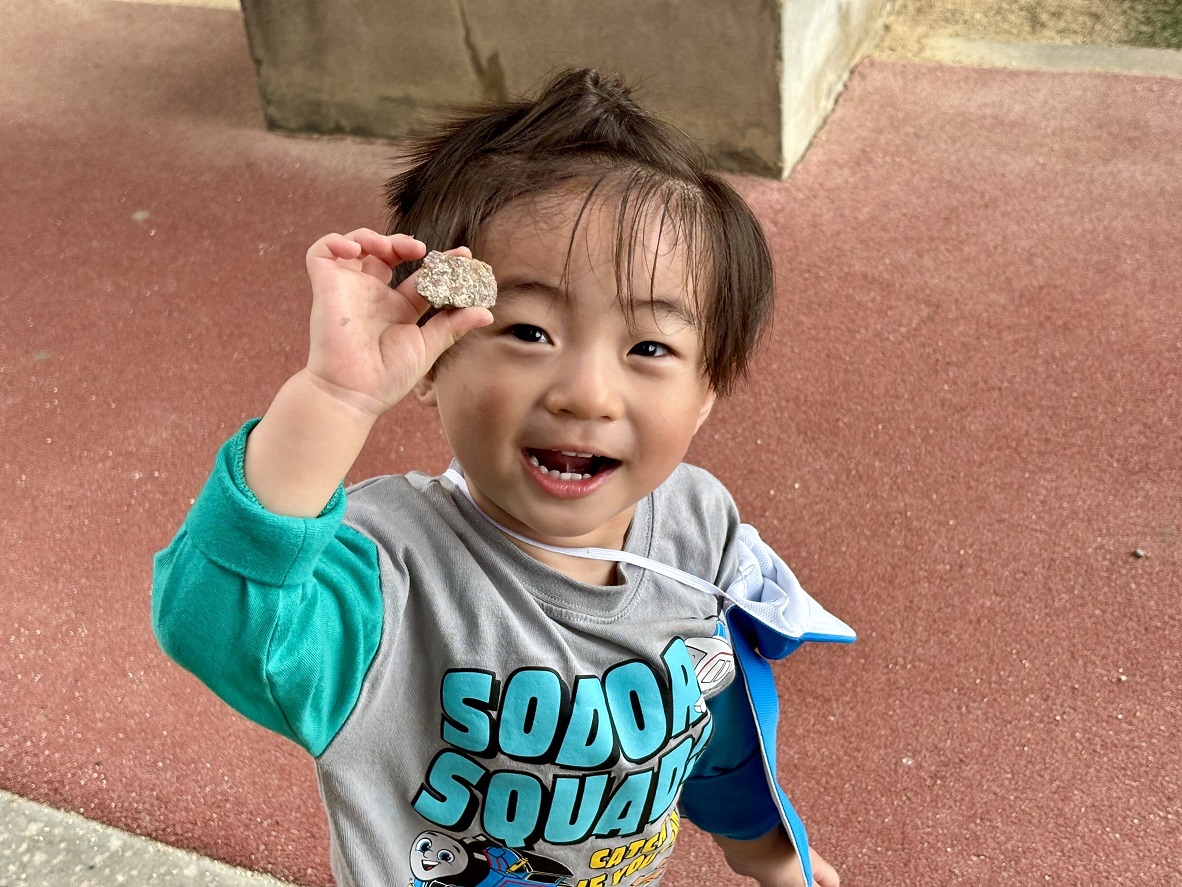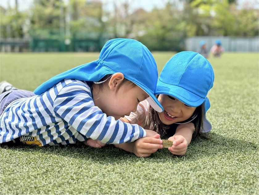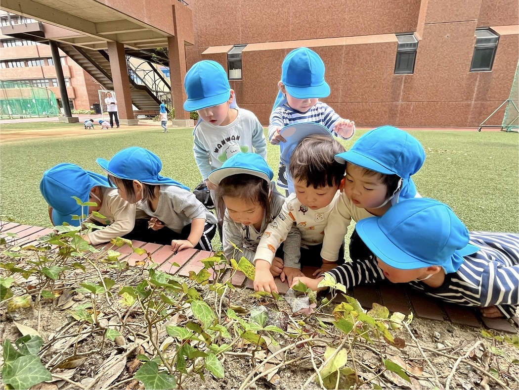 ぱんだ組の子どもたちはお散歩に行くと、虫探しに夢中♪