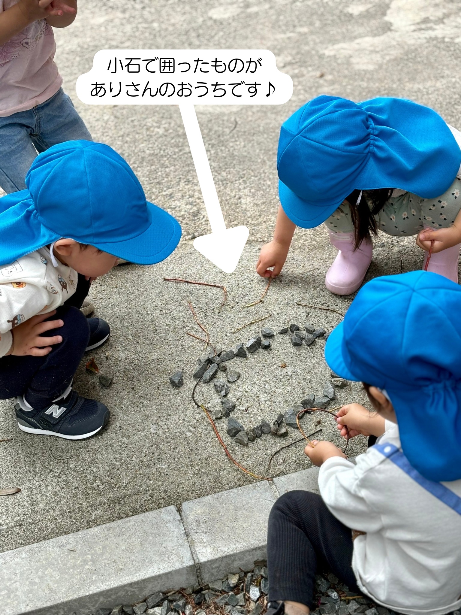 「あっ!だんごむし!」「ありさんのおうちつくろ♪」とお話ししながら、見たりさわったりしています!