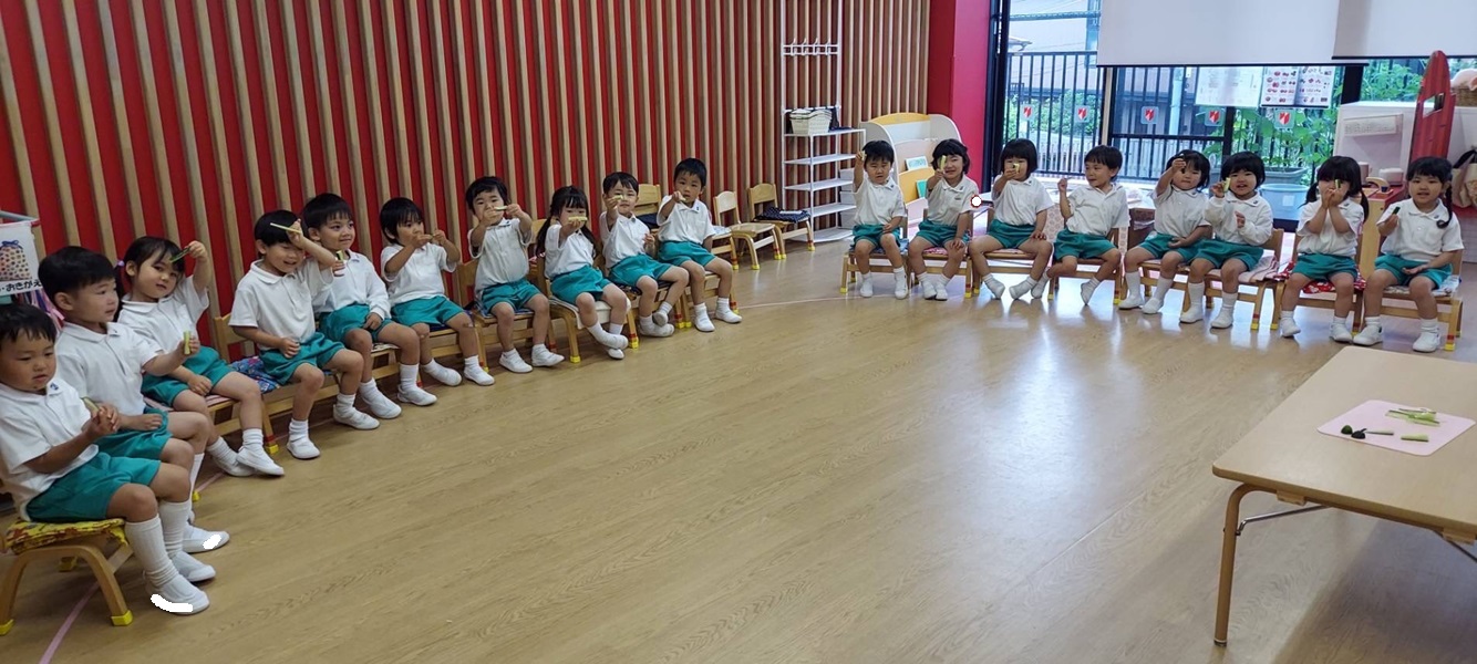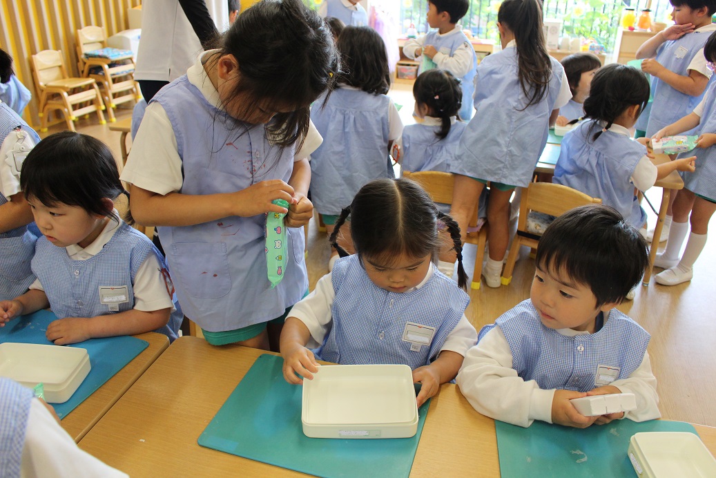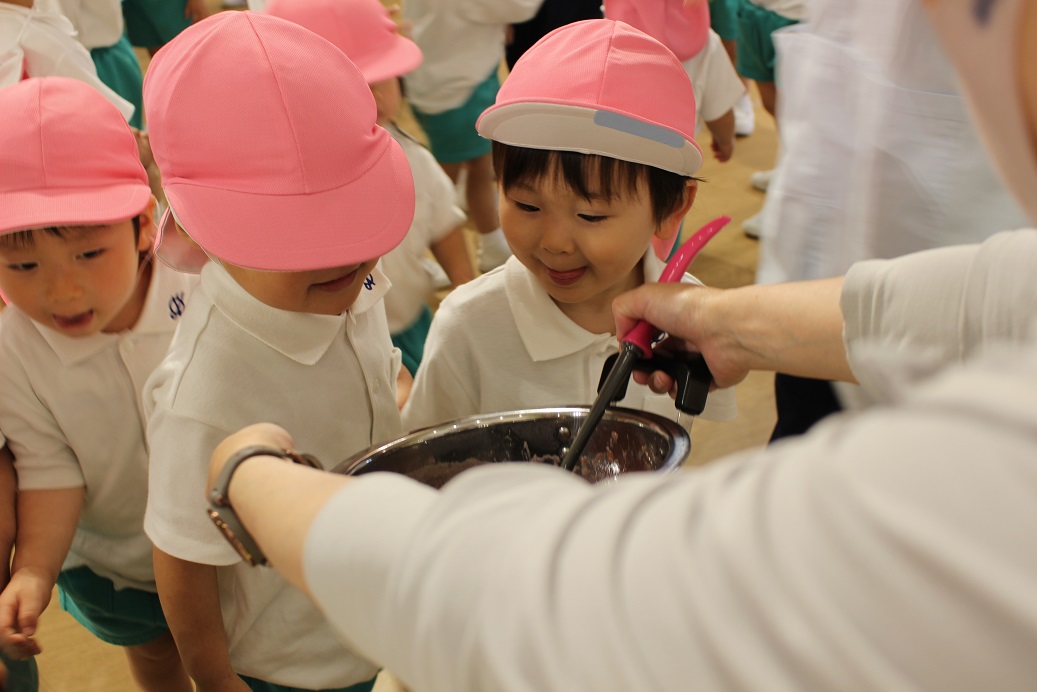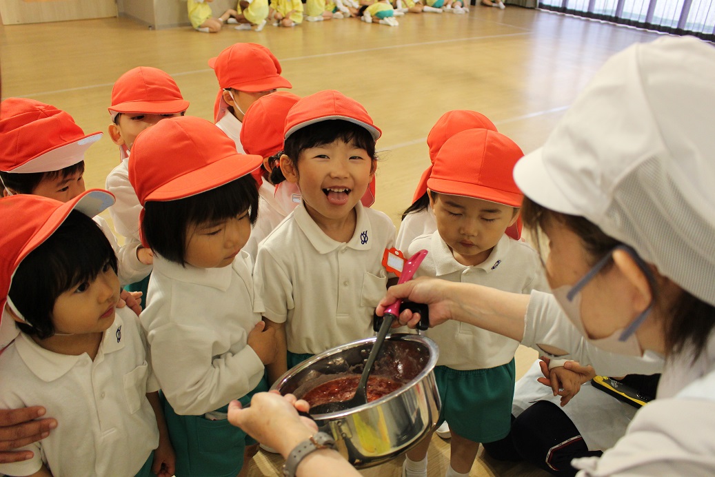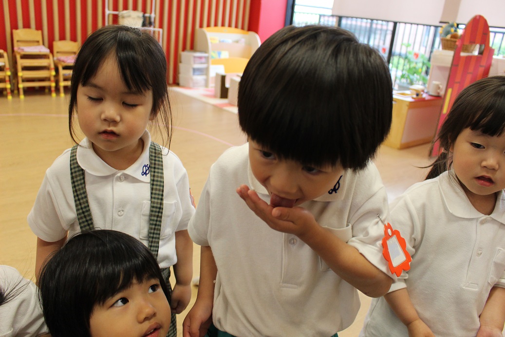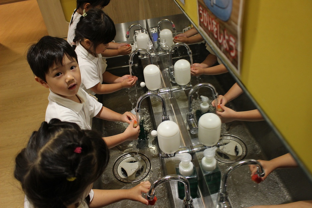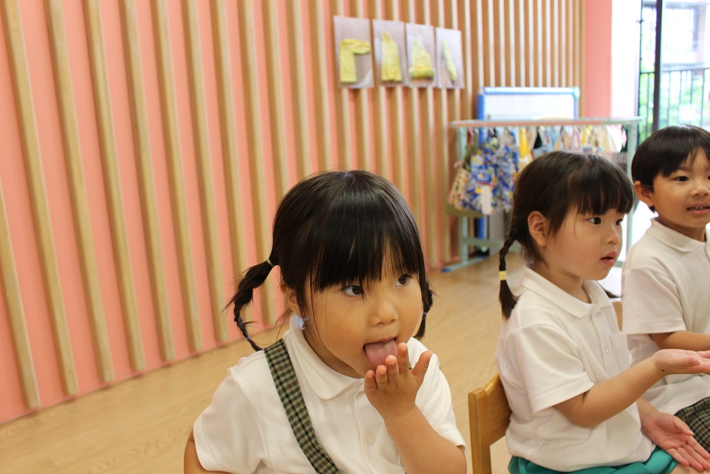 年長組さん、年中組さん、年少組さんで石けんで手を洗ってから味見をしました!
