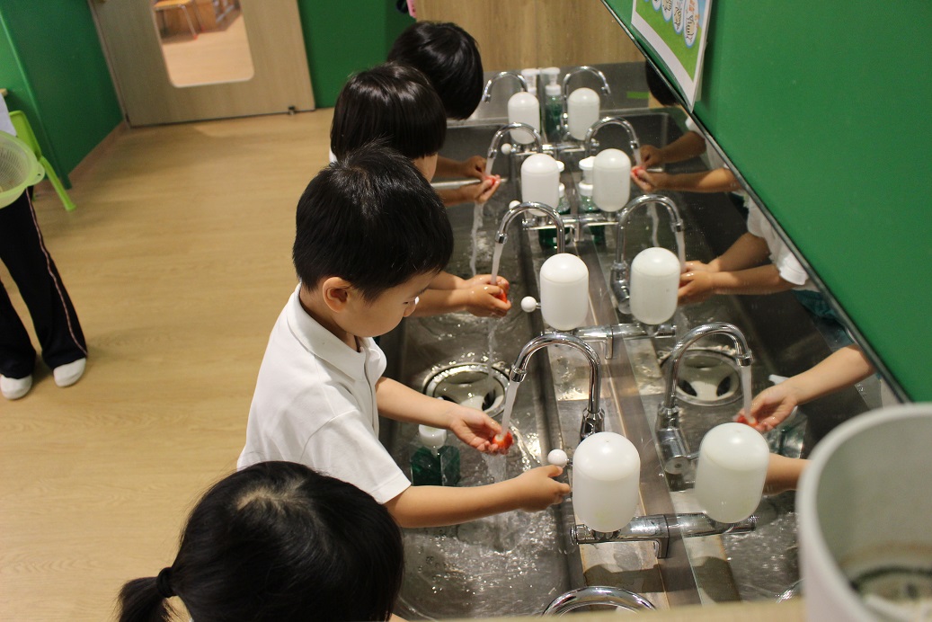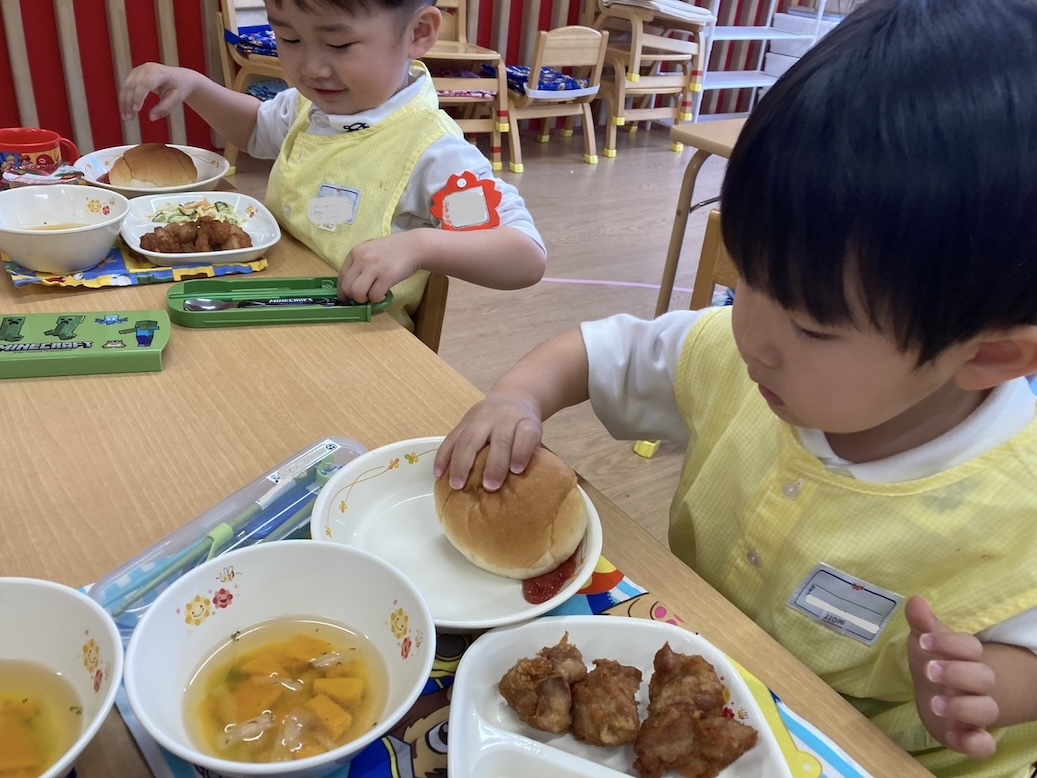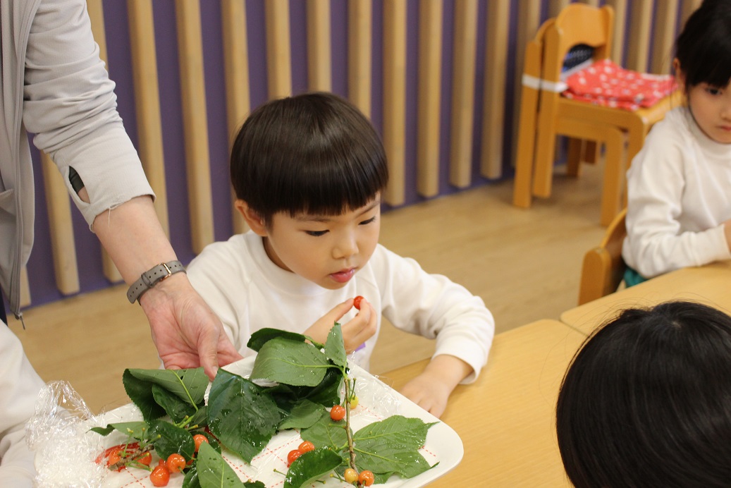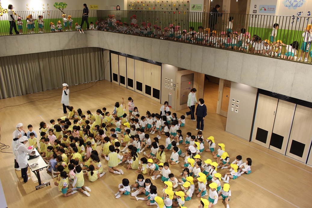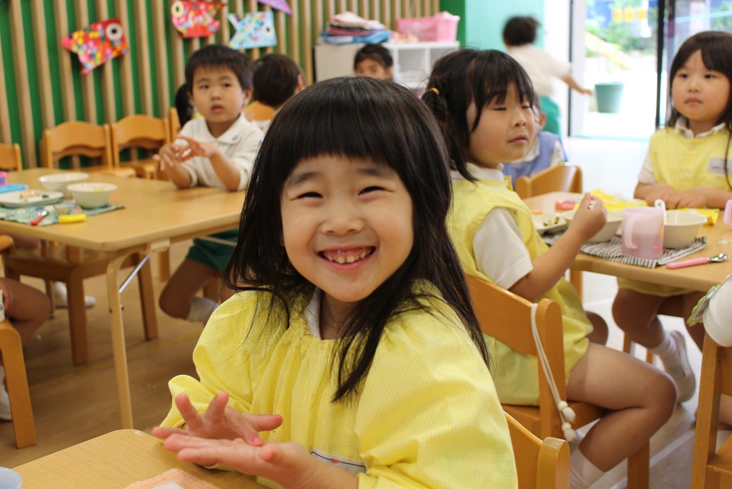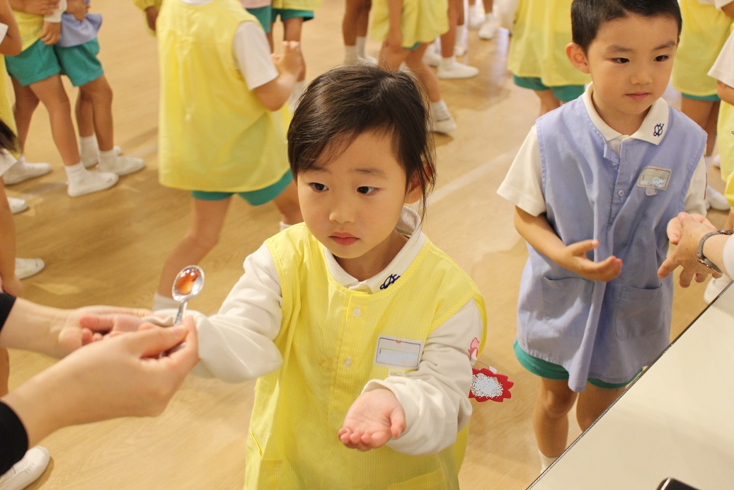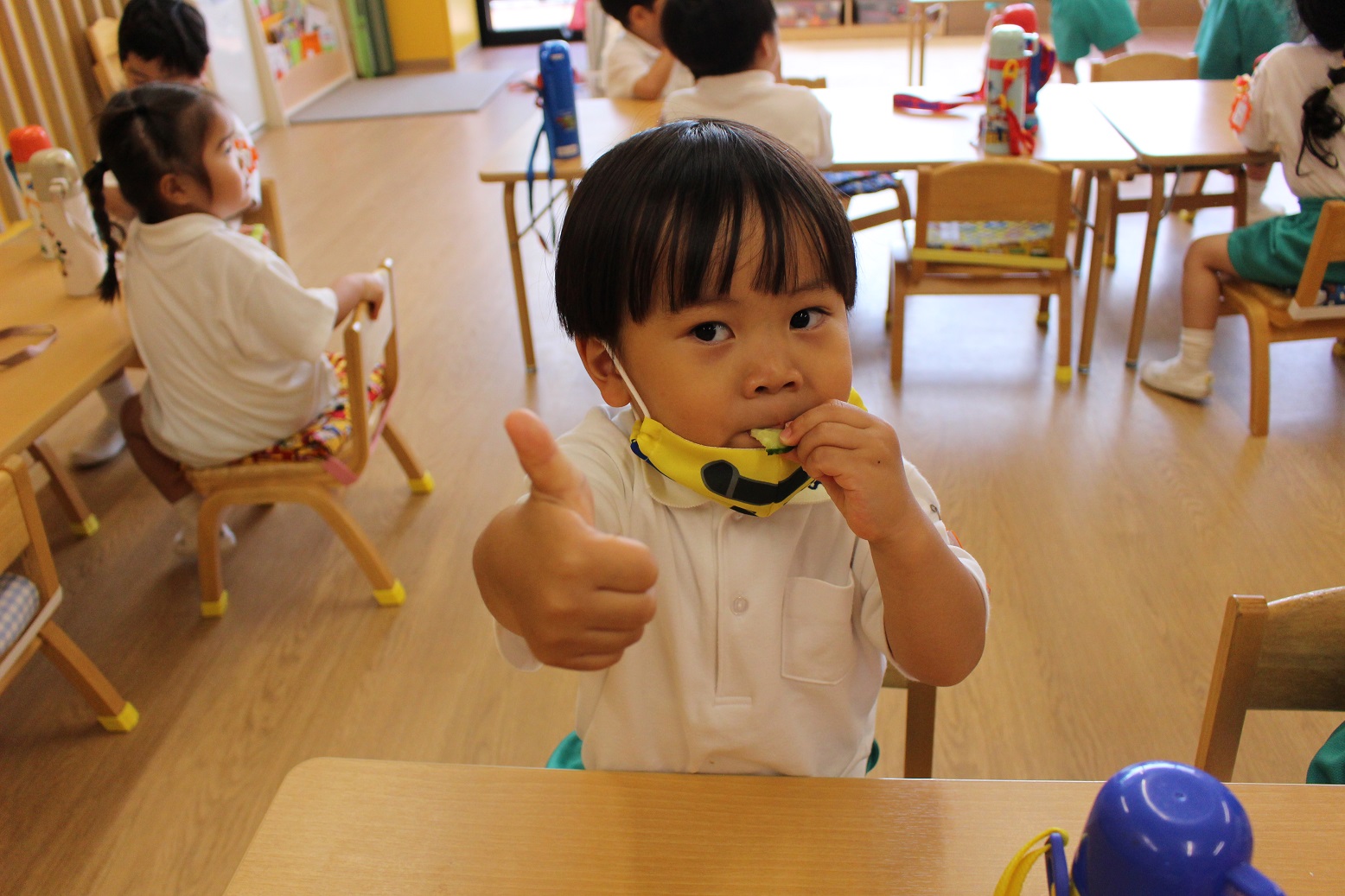 年長組さん、年中組さん、年少組さんで石けんで手を洗ってから味見をしました!