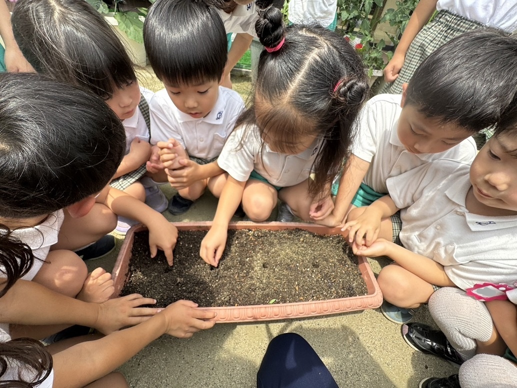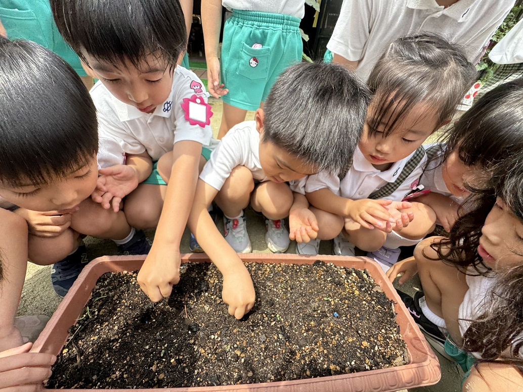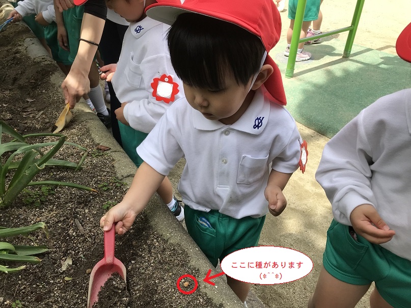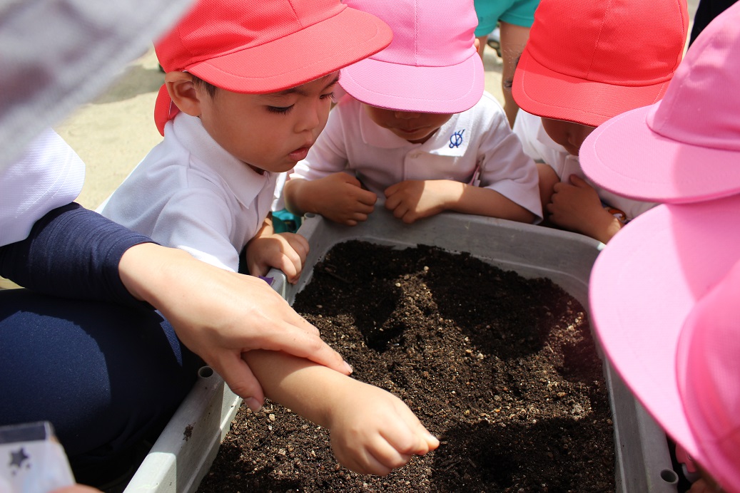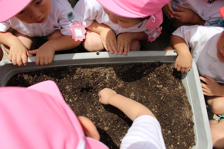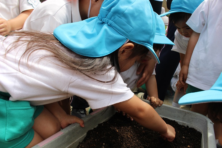 園長先生に「植えたらどうなるかな?みんなで植えてごらん!」と言われ