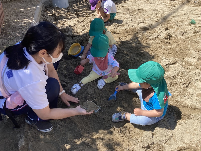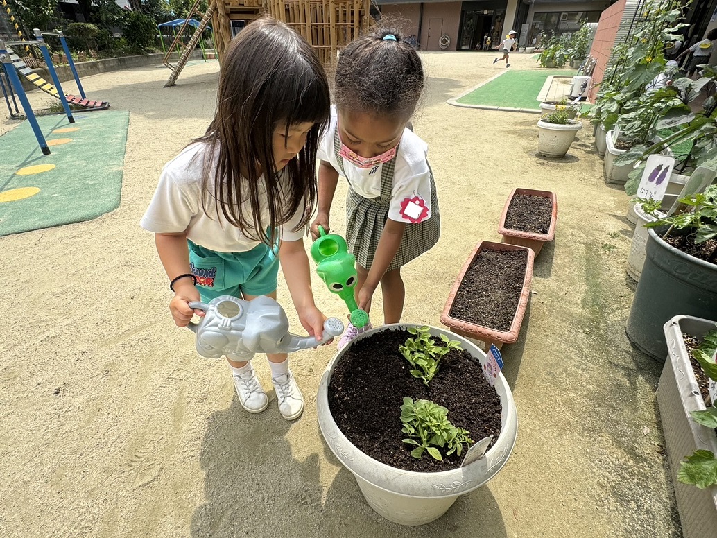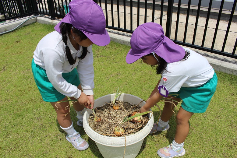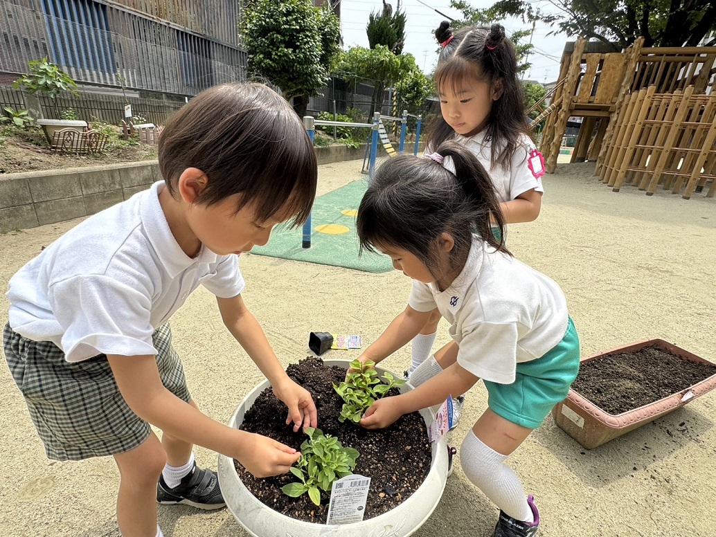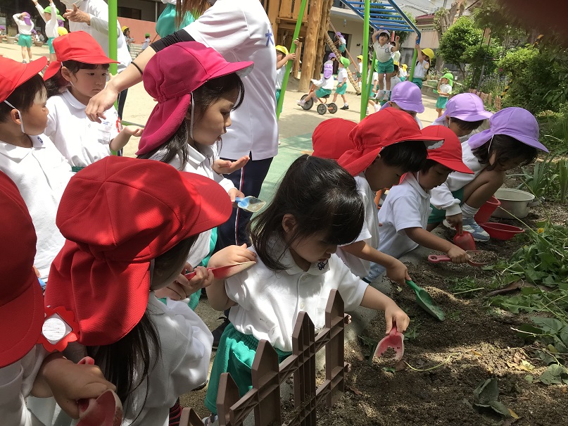 園長先生に「植えたらどうなるかな?みんなで植えてごらん!」と言われ