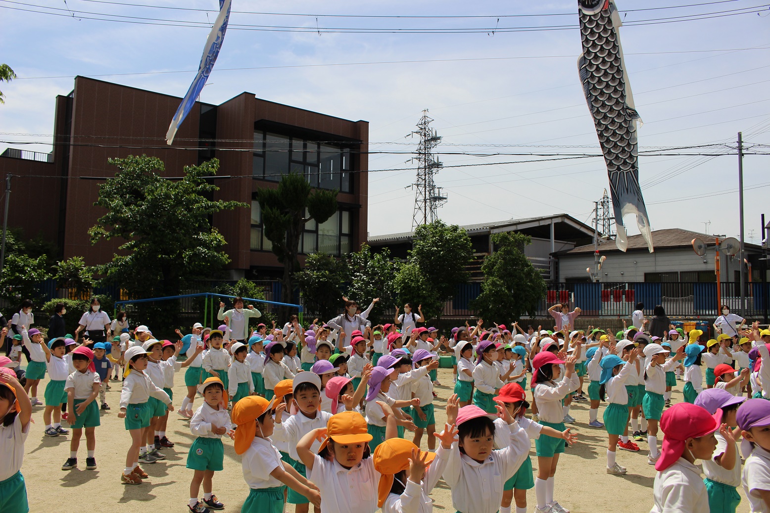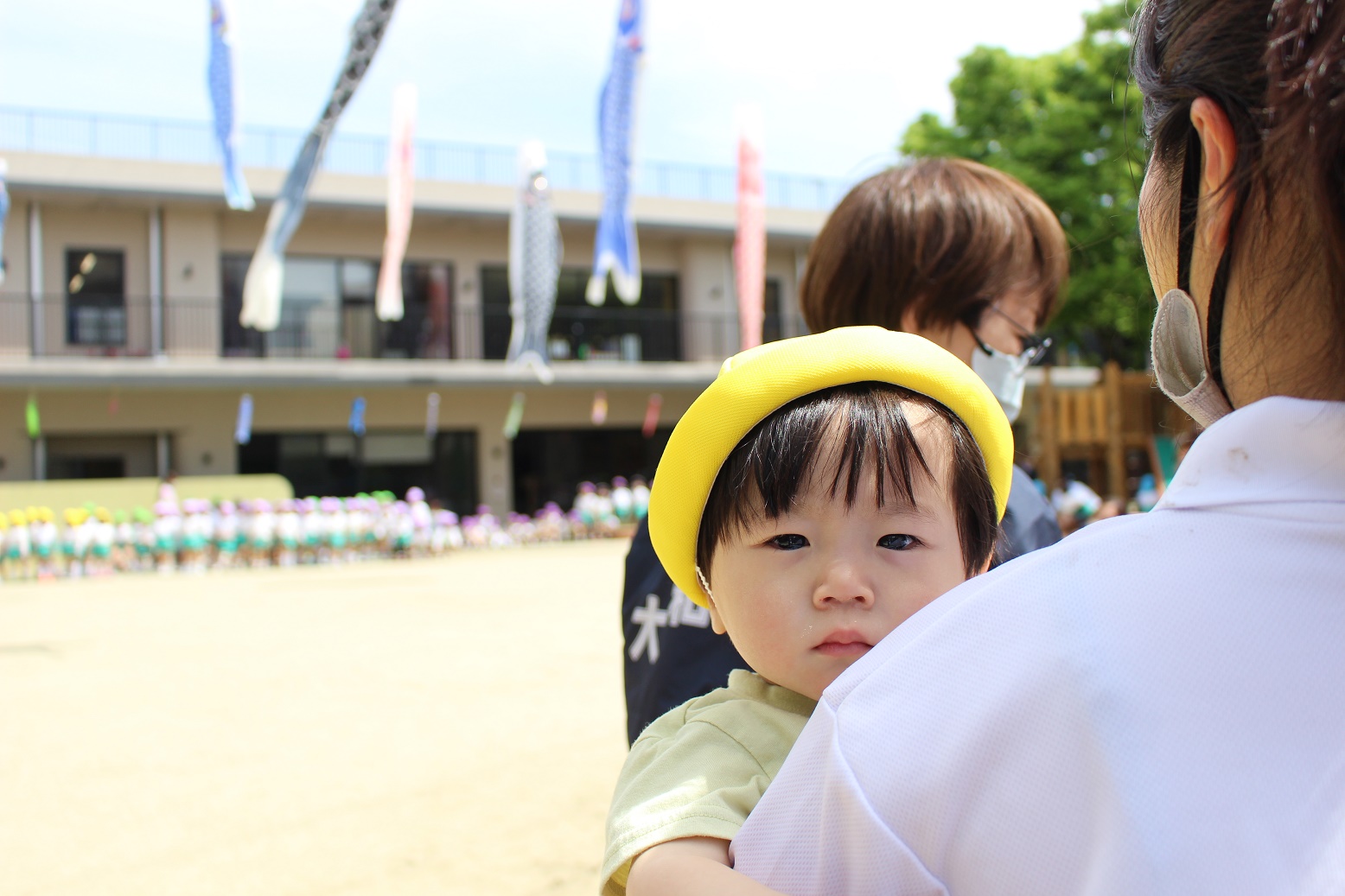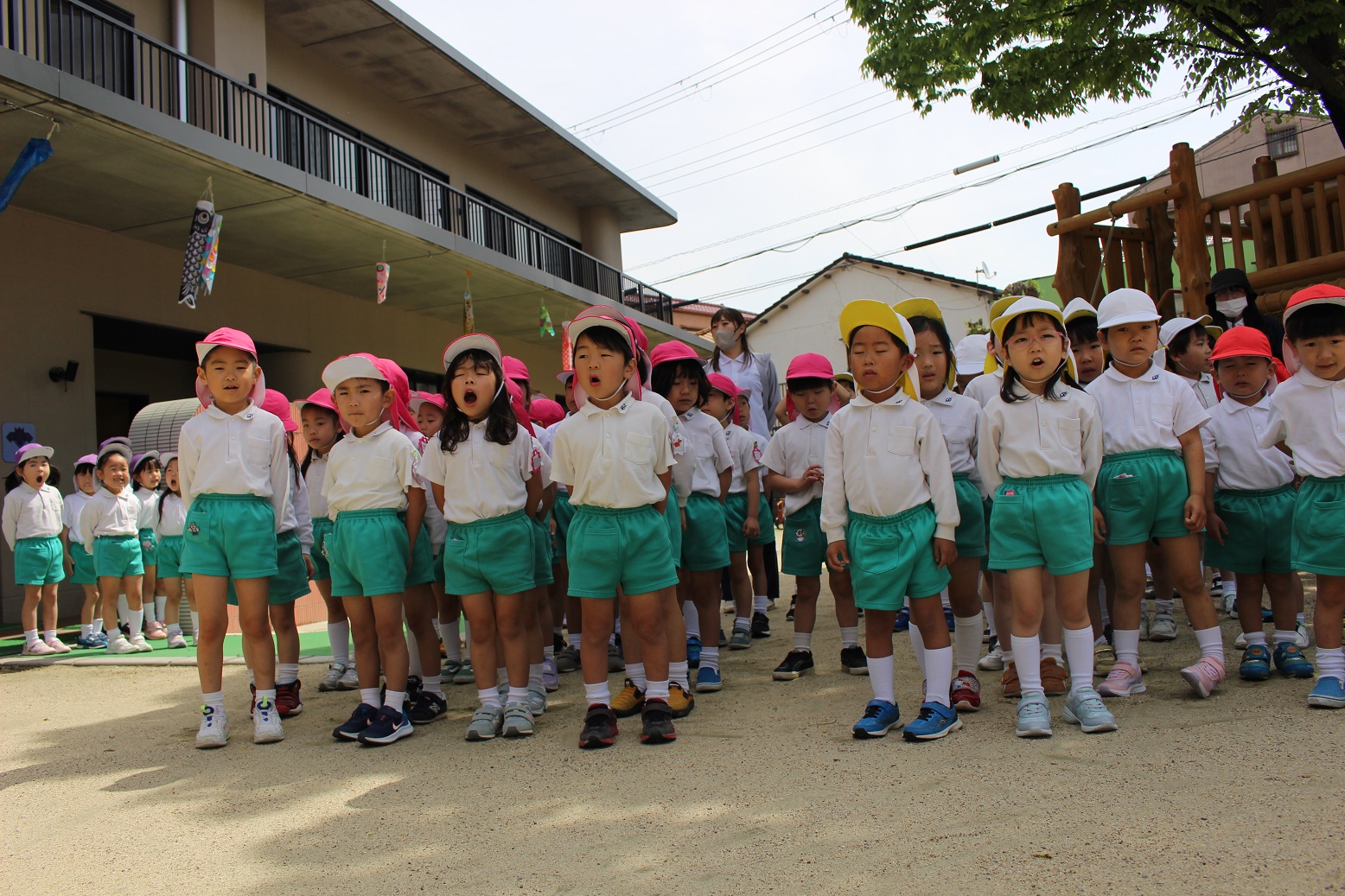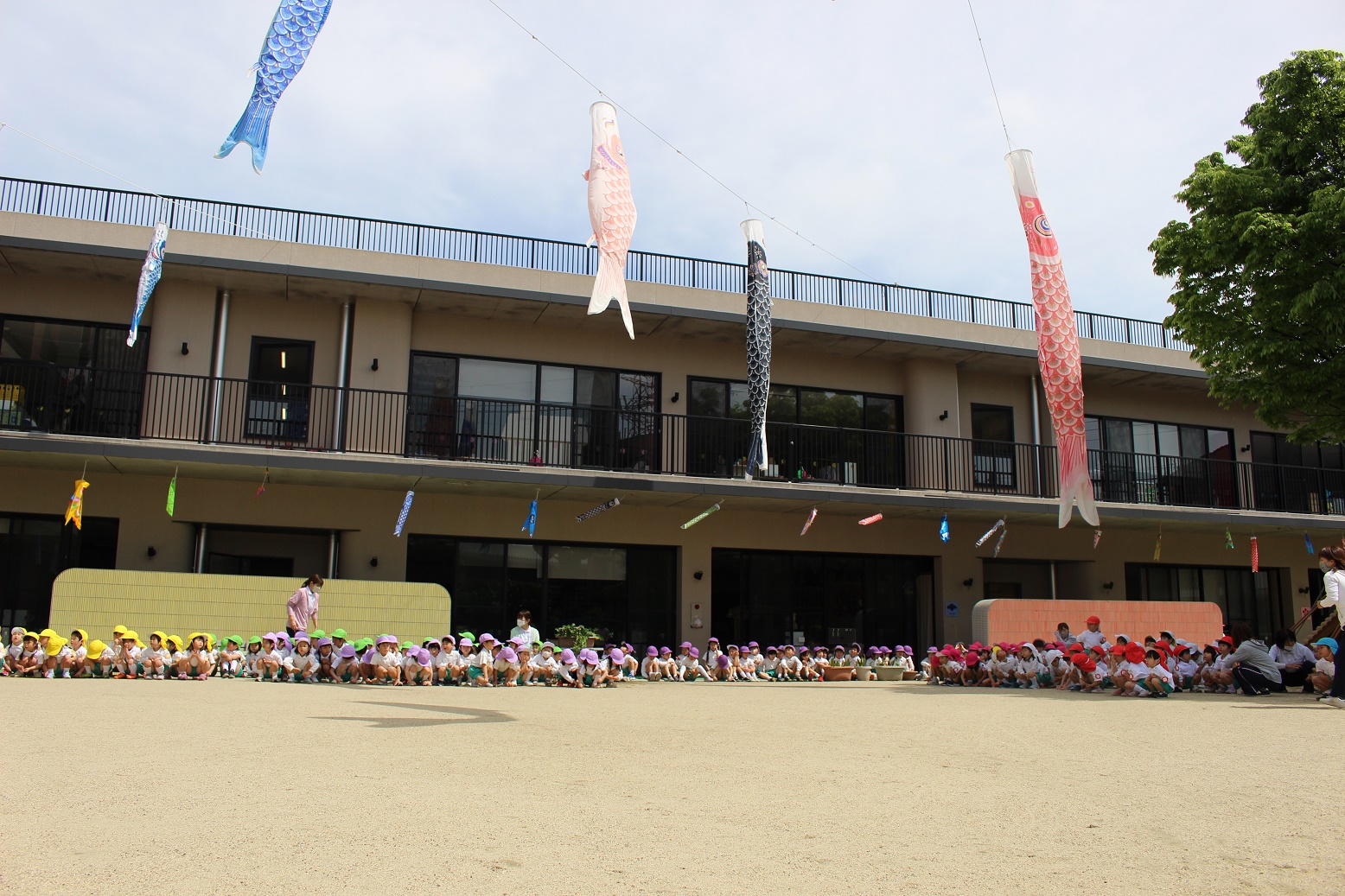 今日はこどもの日の集いがあり、全園児が園庭に集まりました!