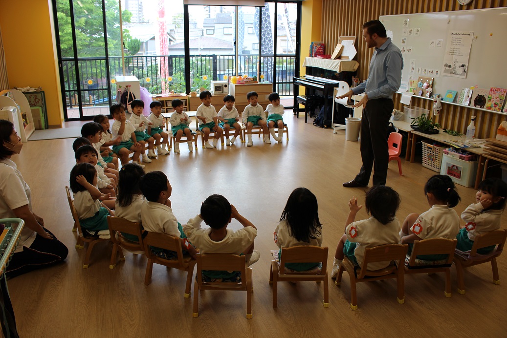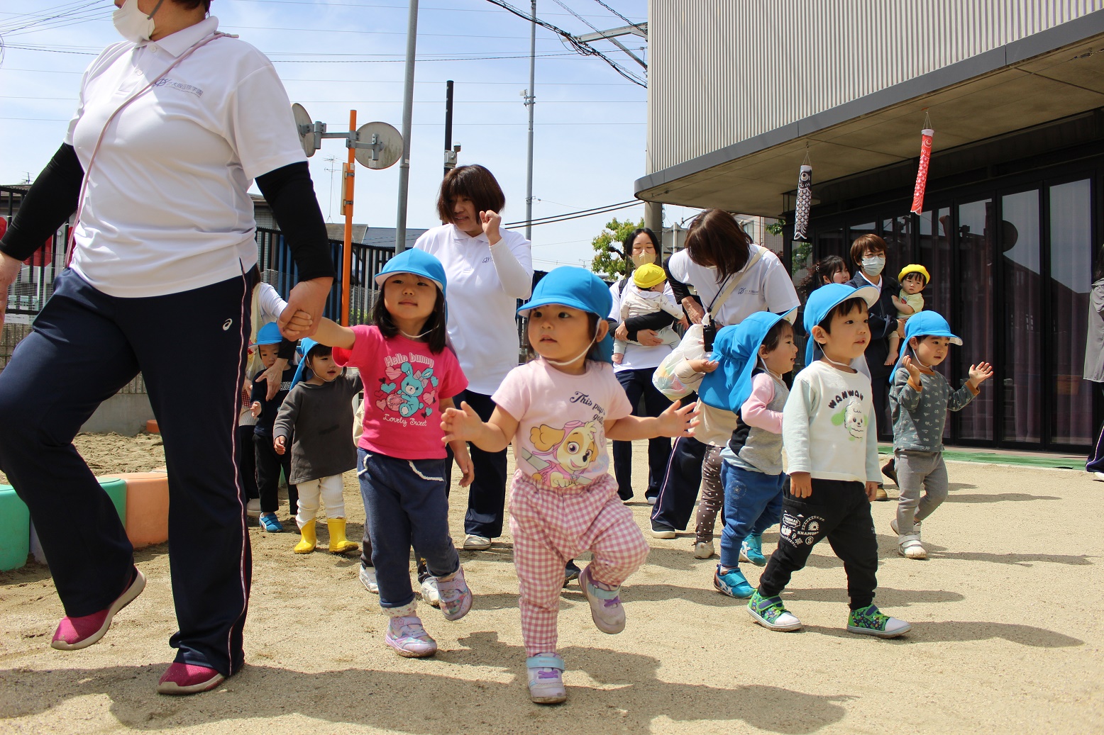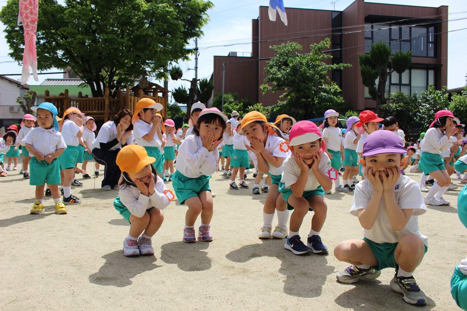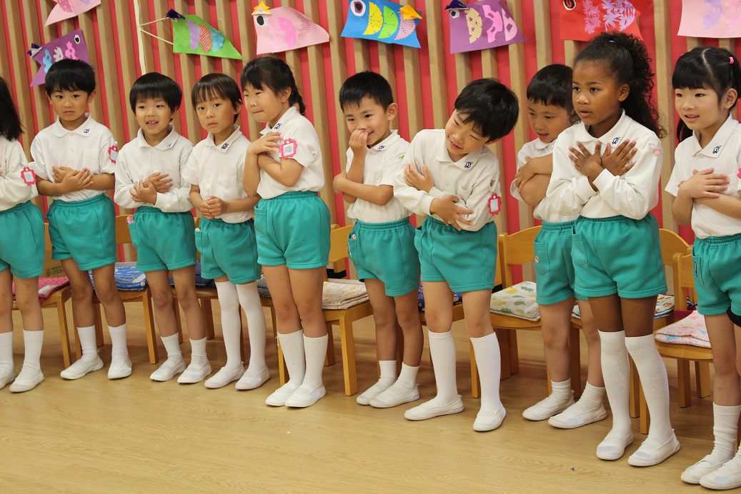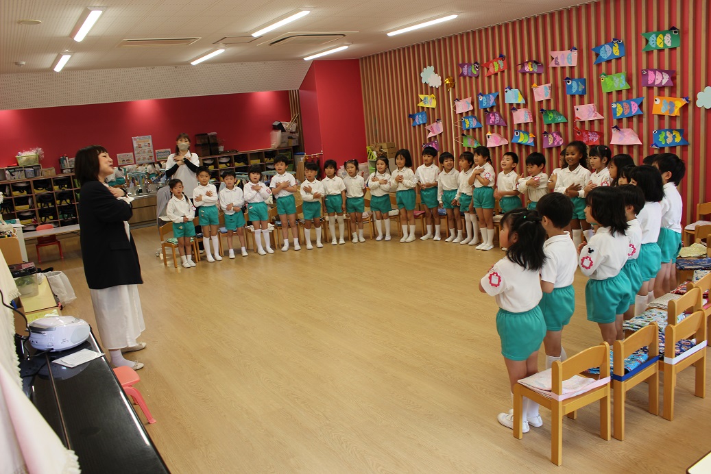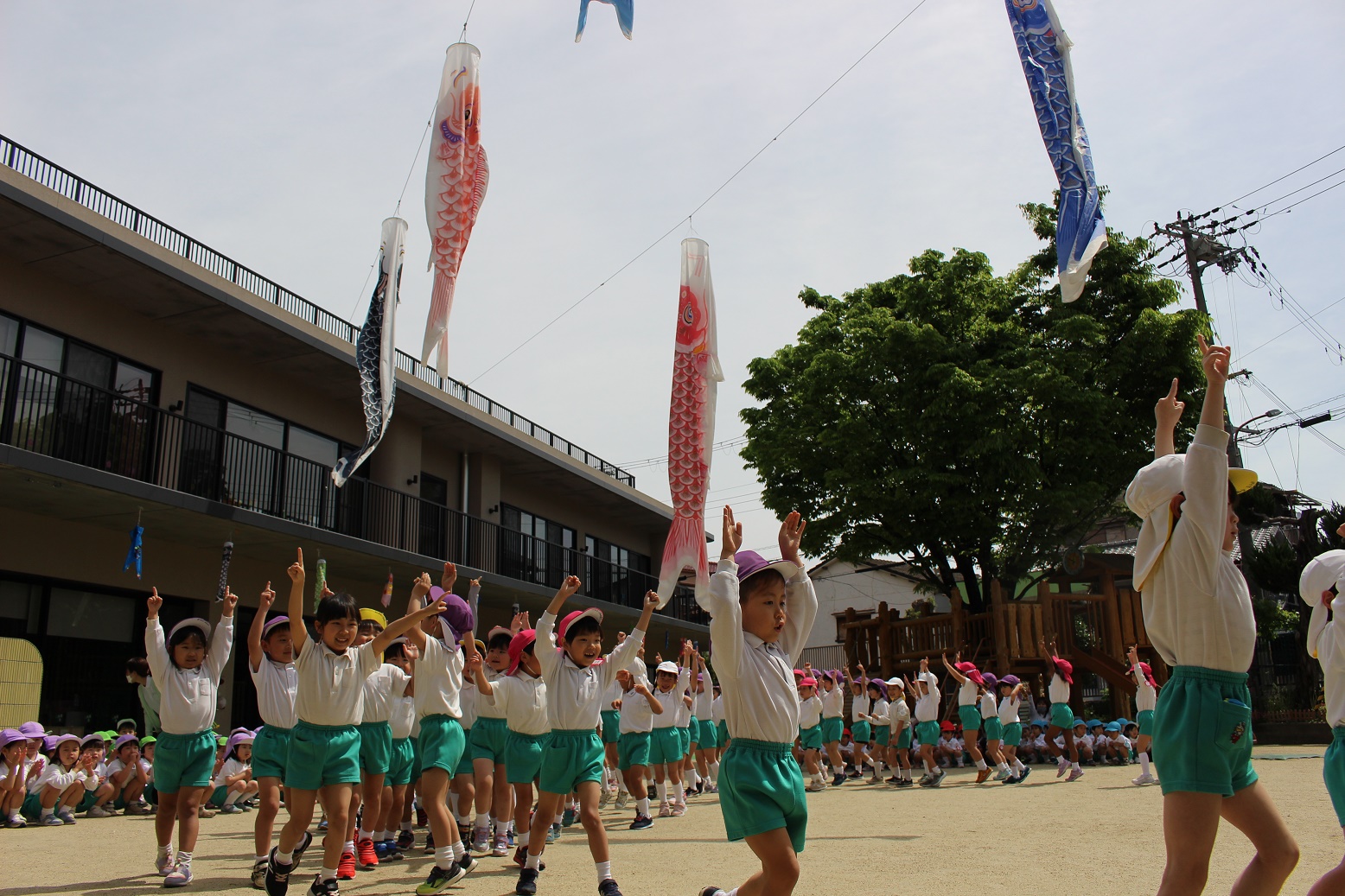 今日はこどもの日の集いがあり、全園児が園庭に集まりました!