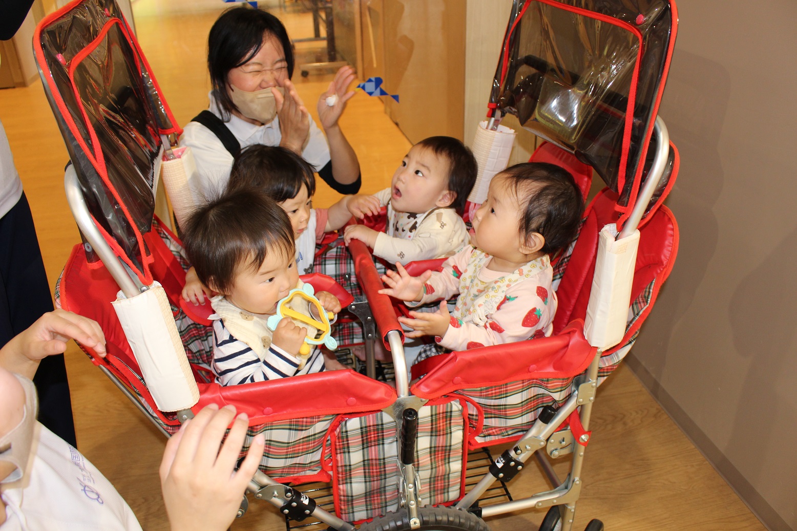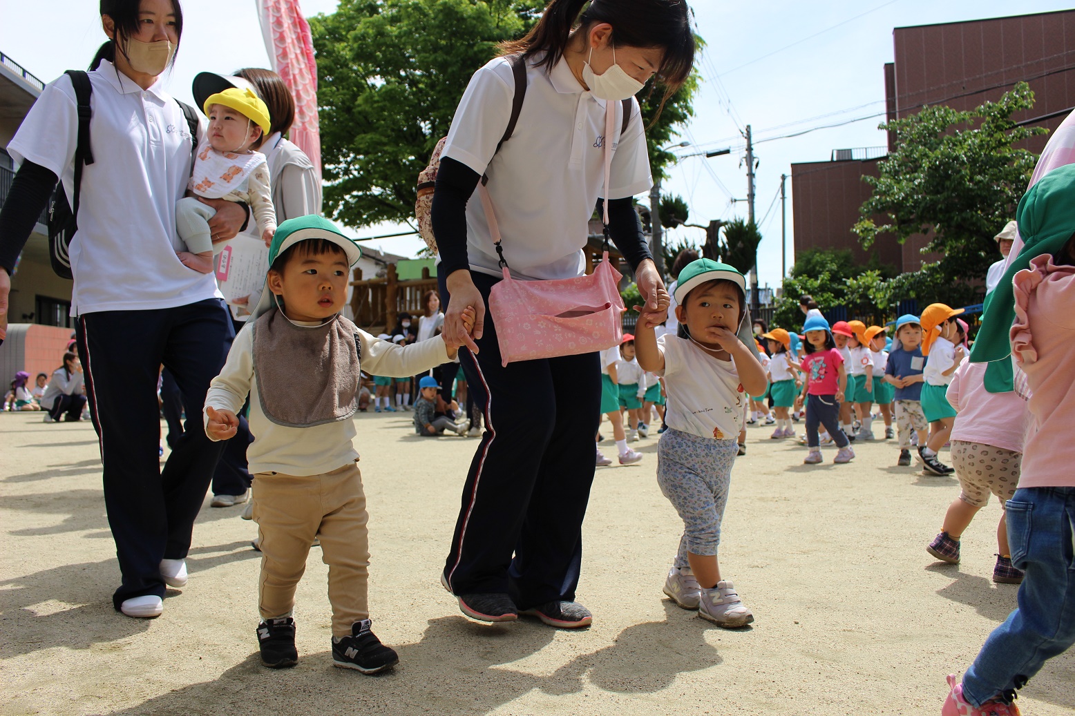 うさぎ組さんとぱんだ組さんも、お兄ちゃんお姉ちゃんの真似っこをしてテクテク♪