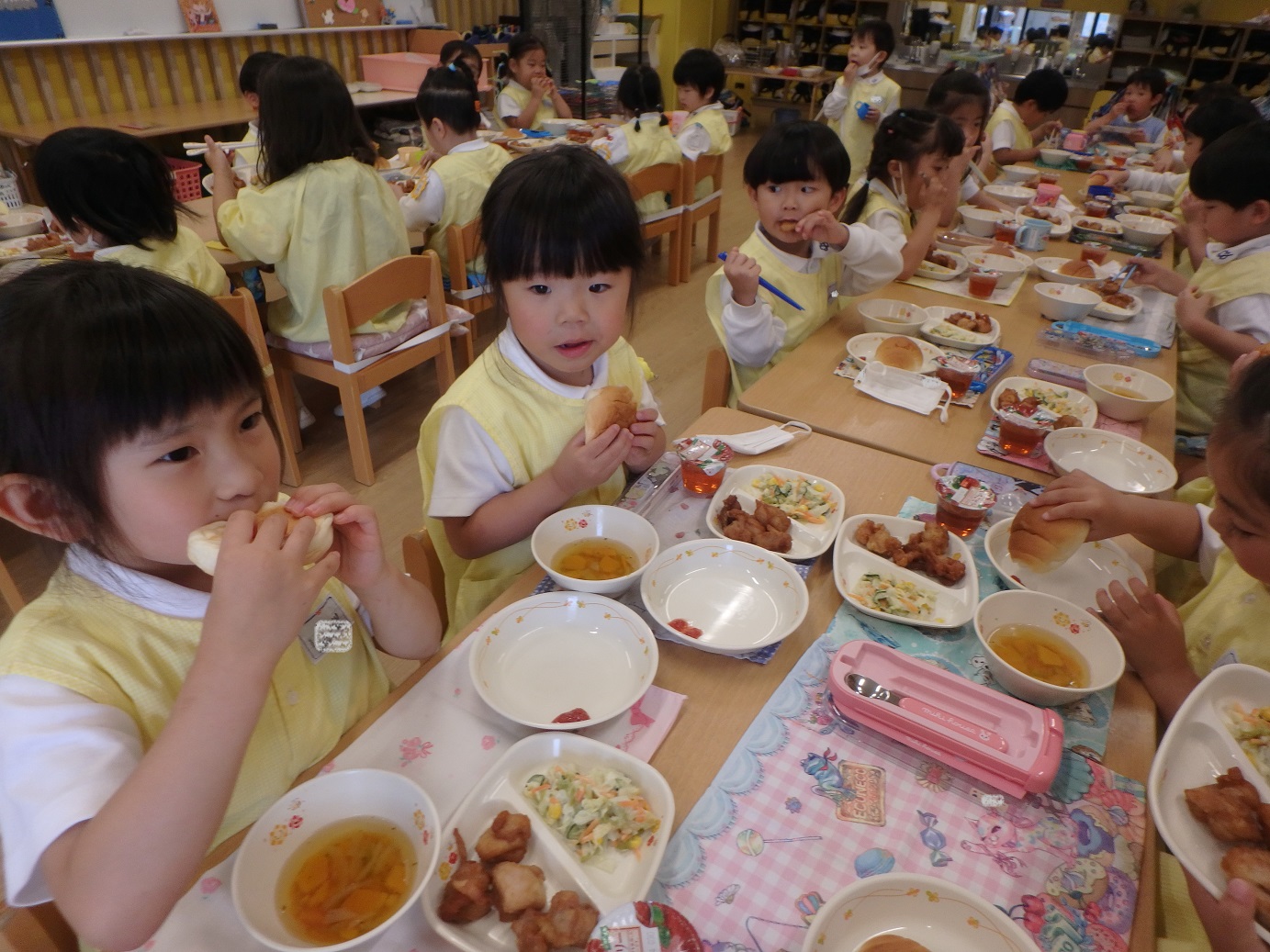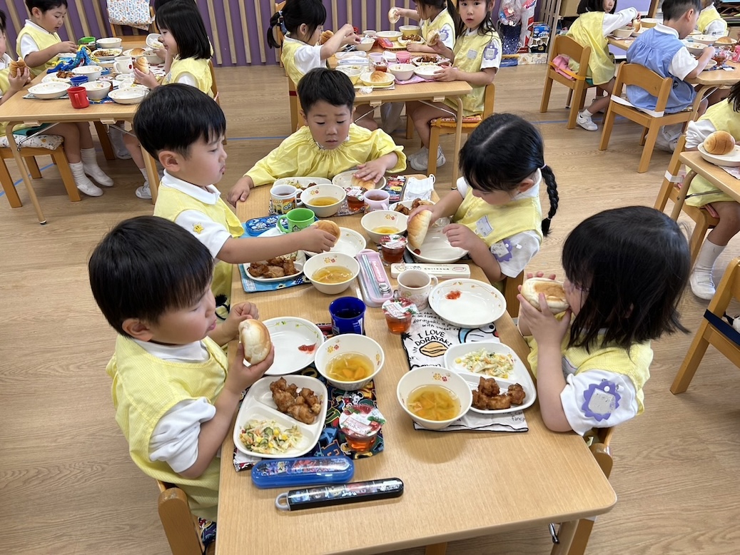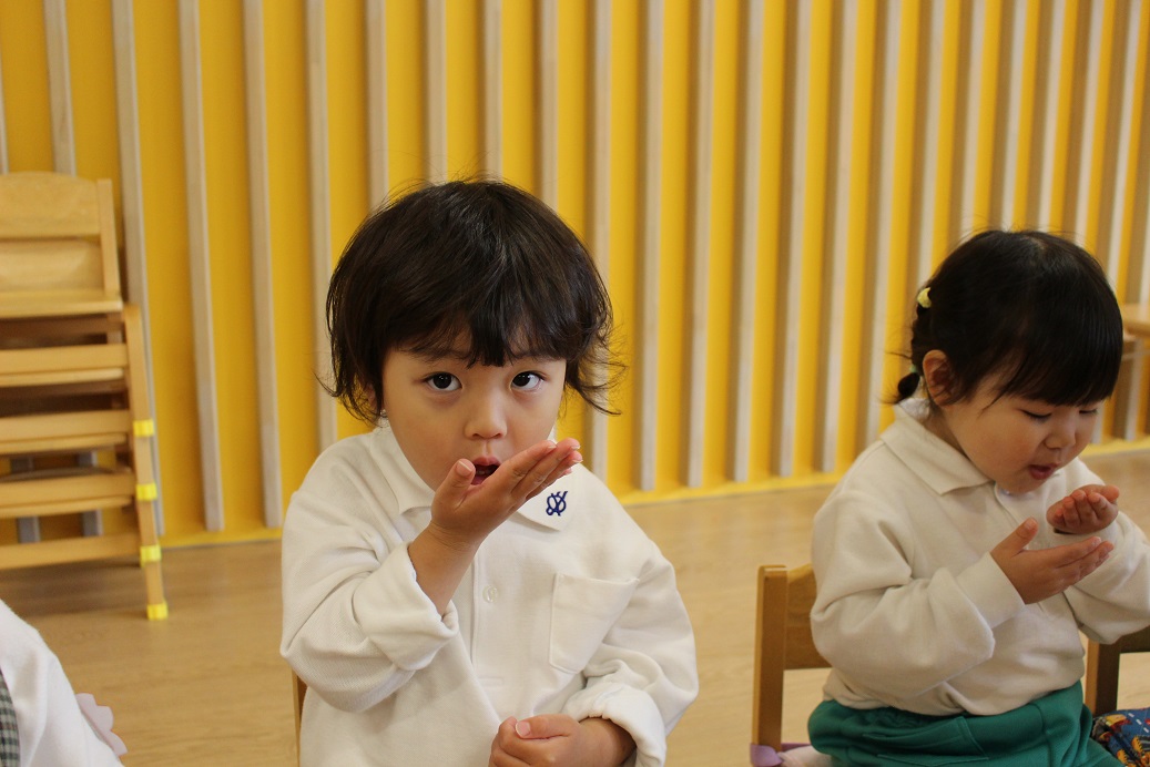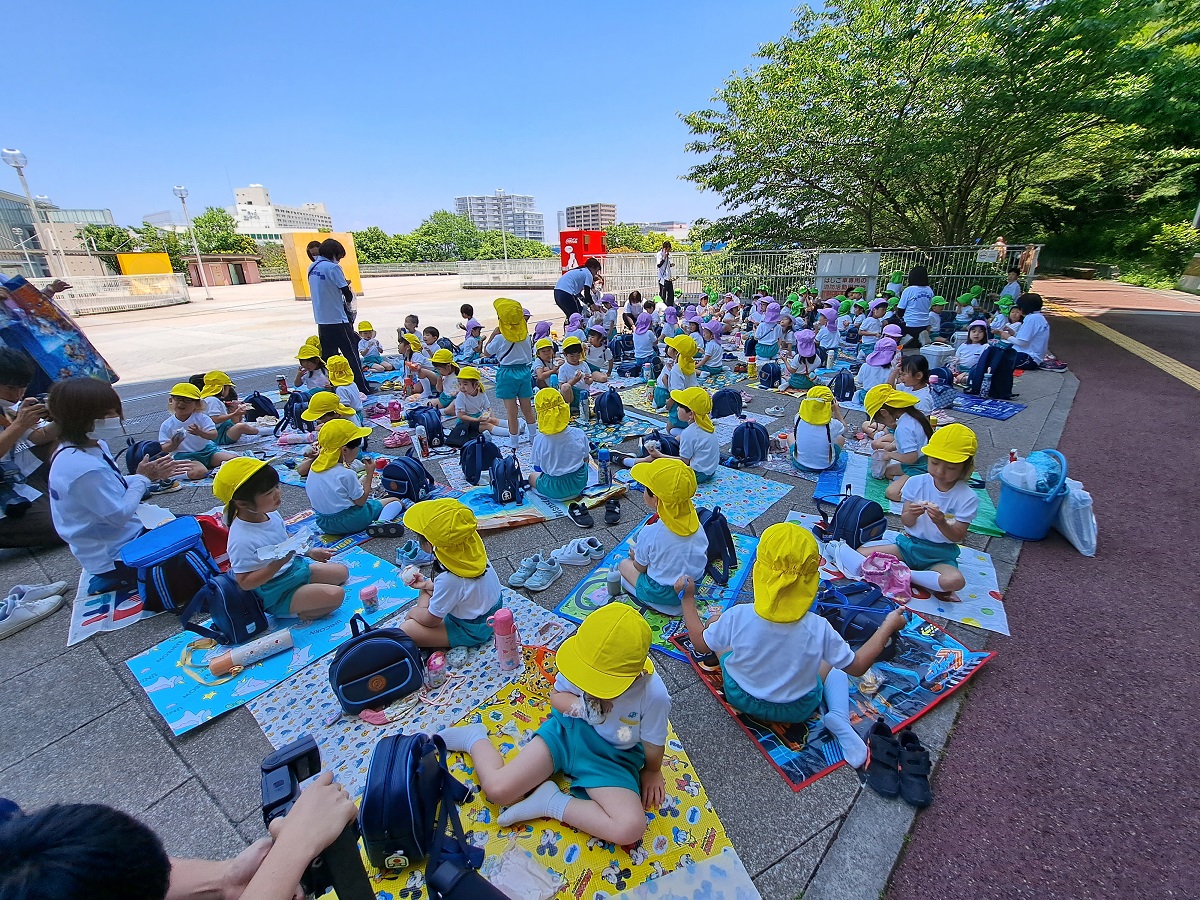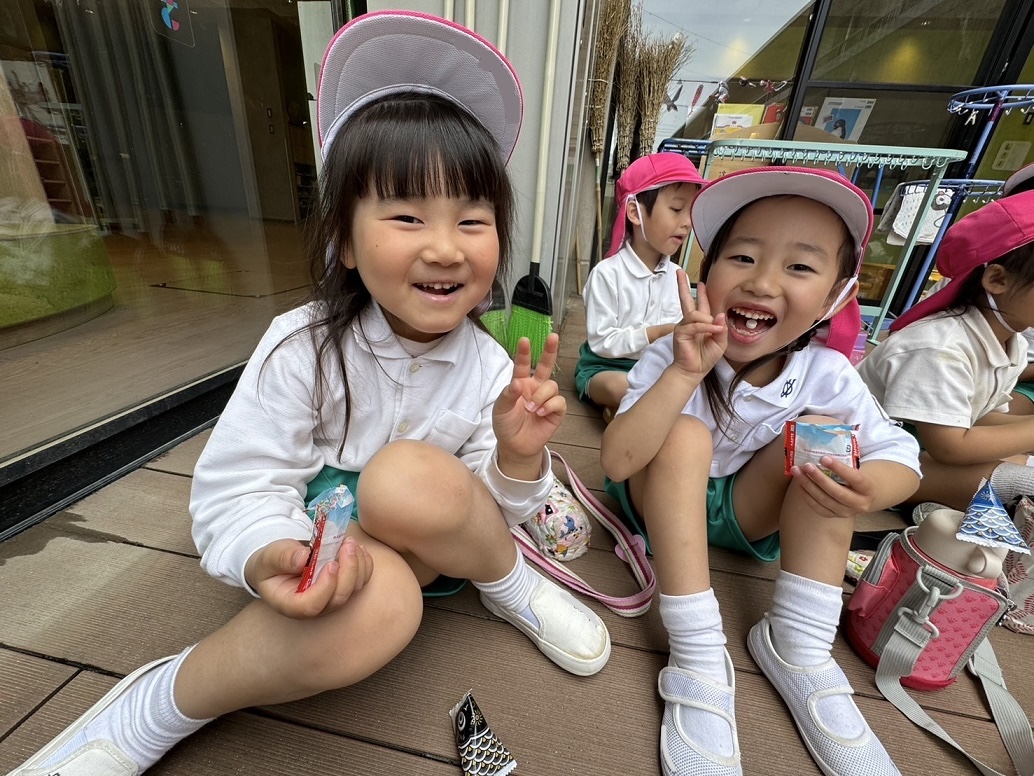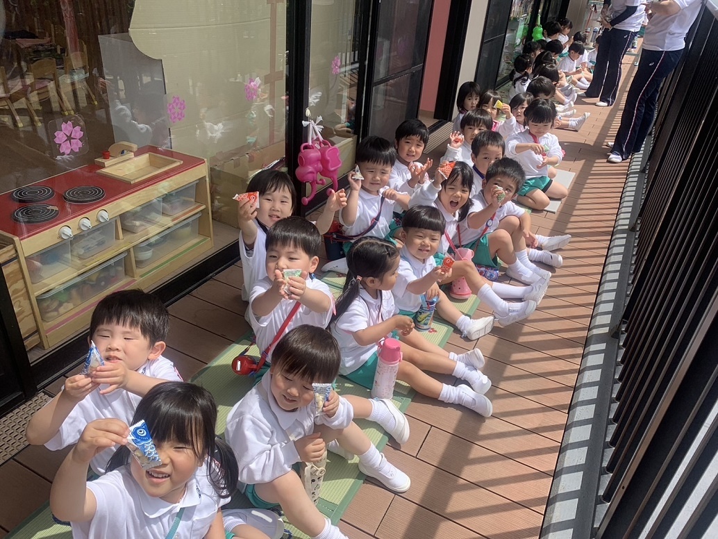 気持ちの良い青空の下でおやつを食べ、楽しいこどもの日の集いとなりました。