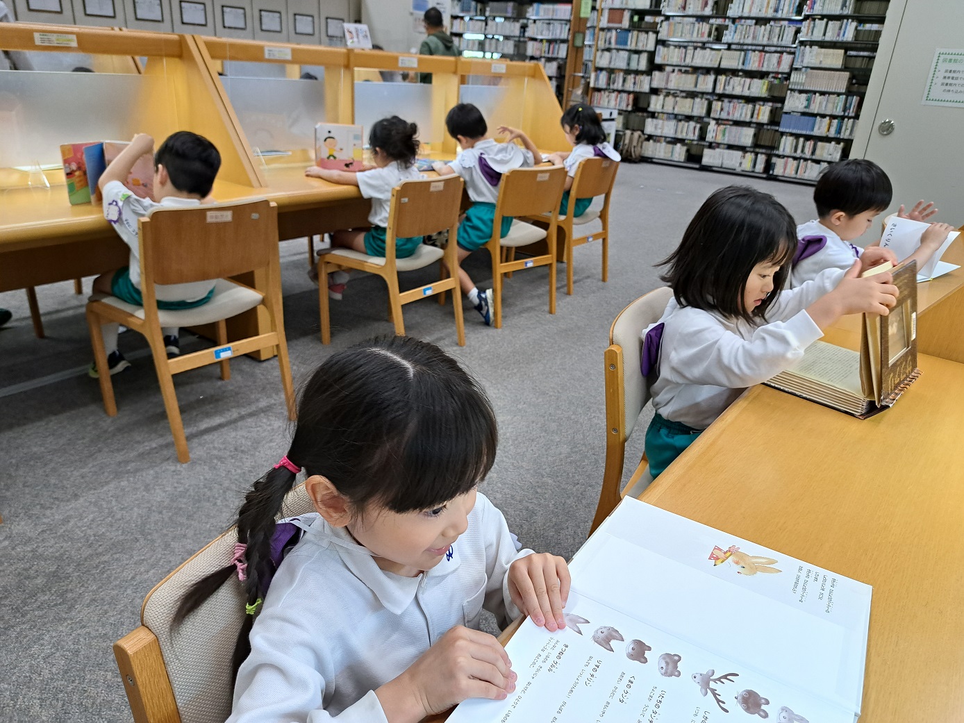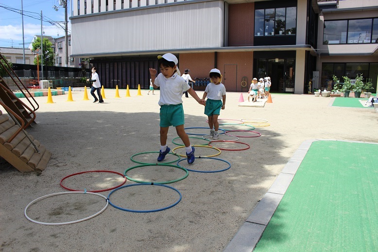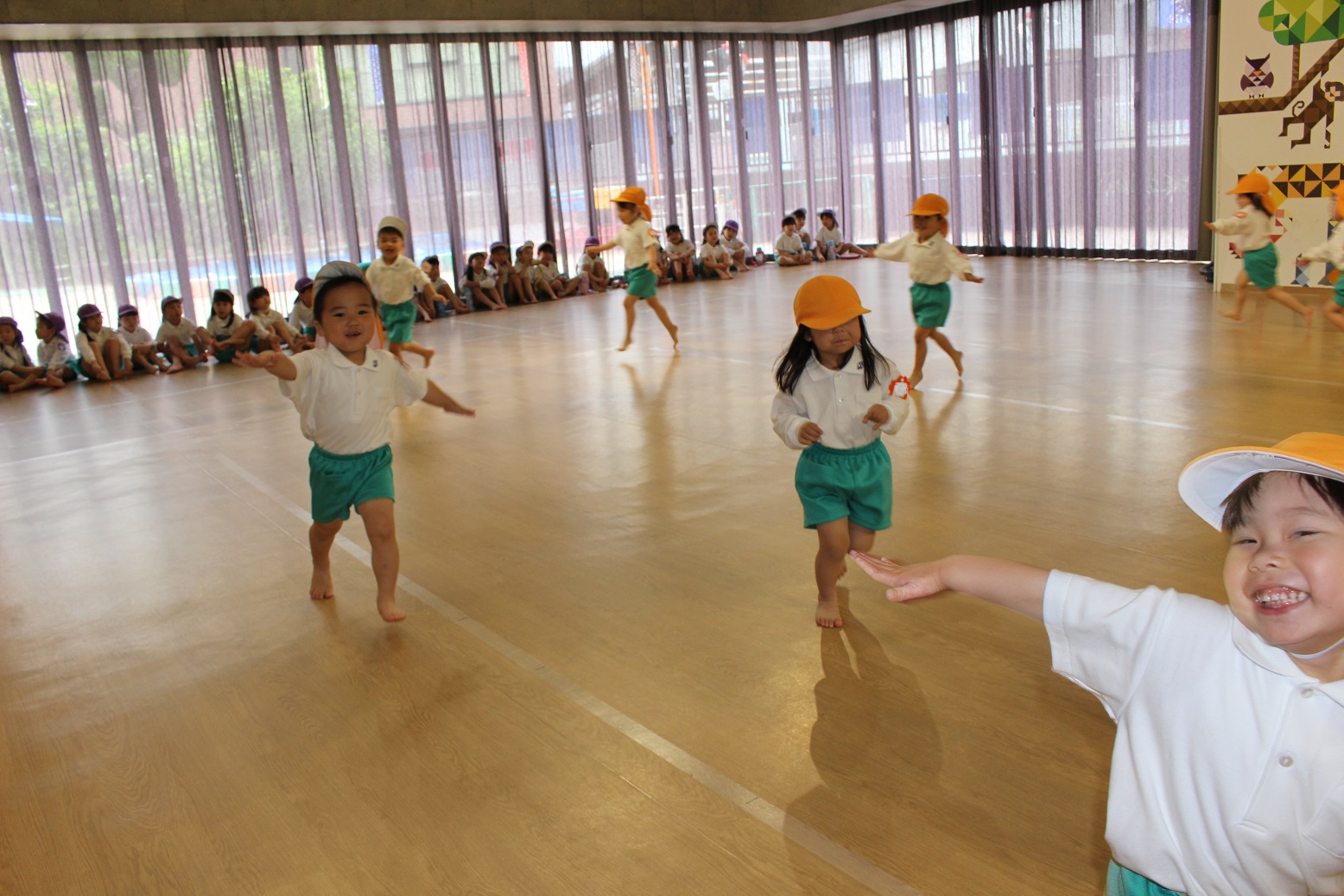 学年ごとで歩いたあとには大和田幼稚園全員で園庭を歩きました。