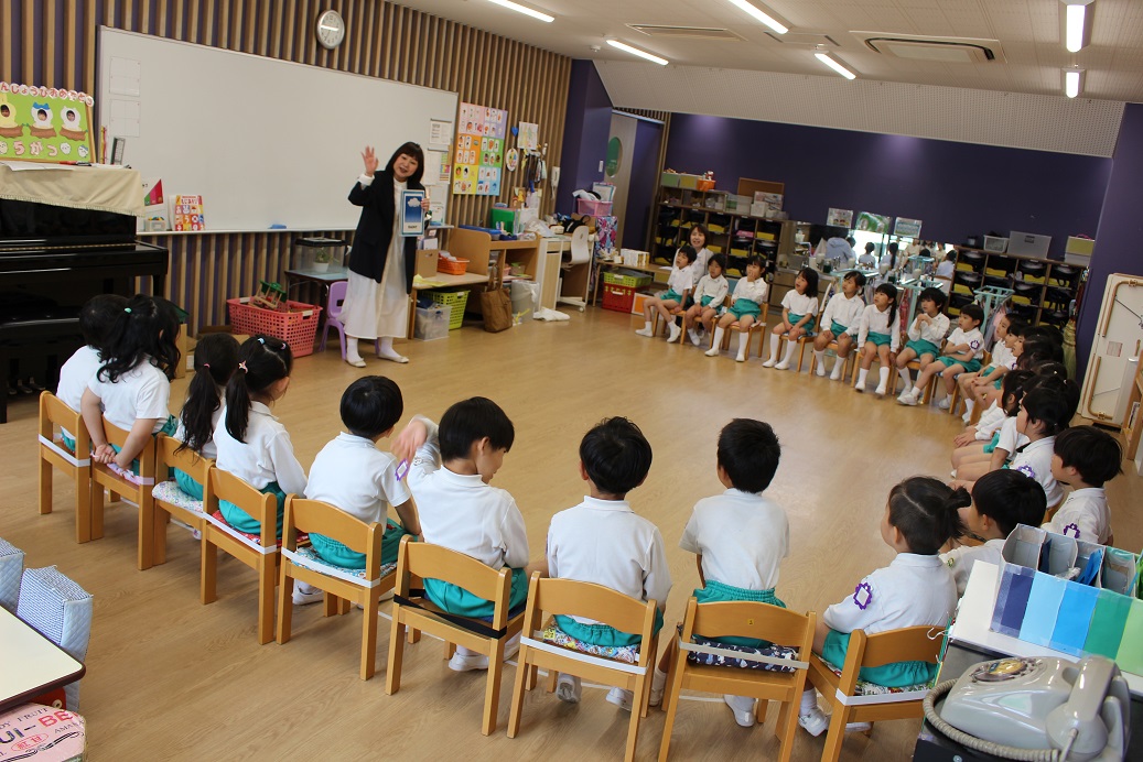 こどもの日のお話を聞き、大きな声で『こいのぼり』を歌います。