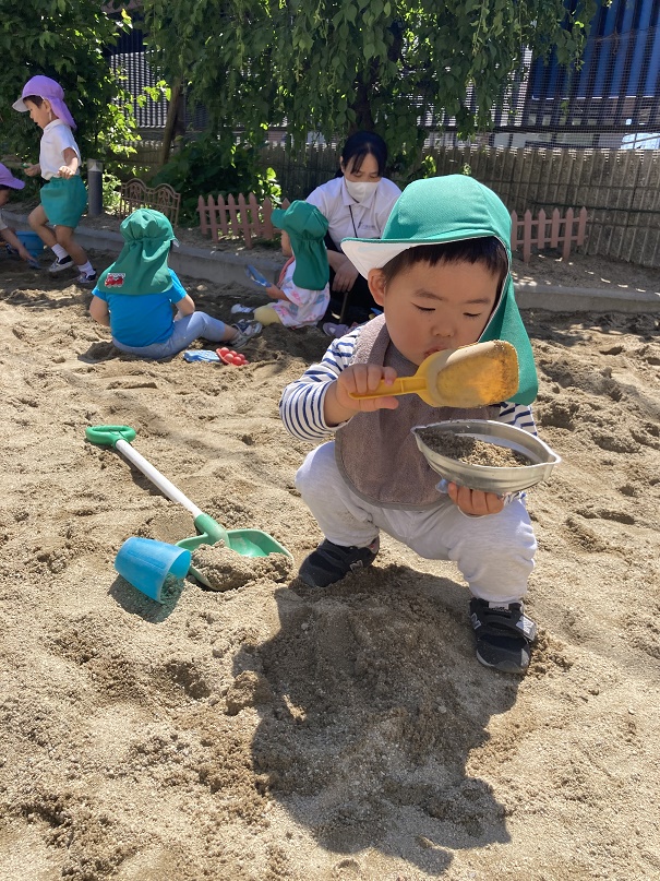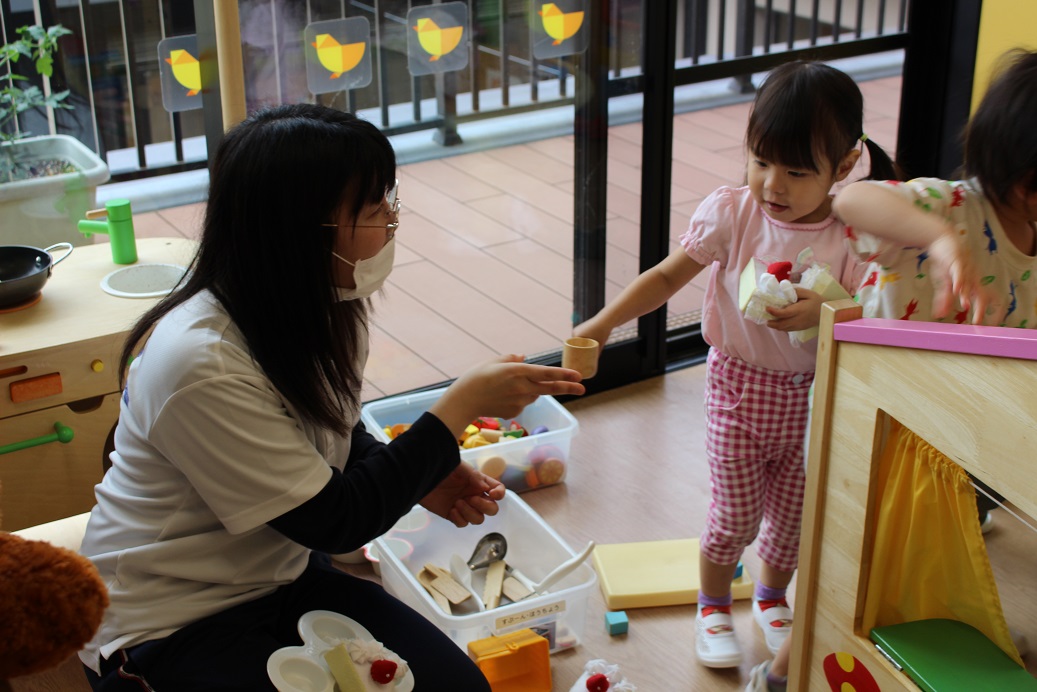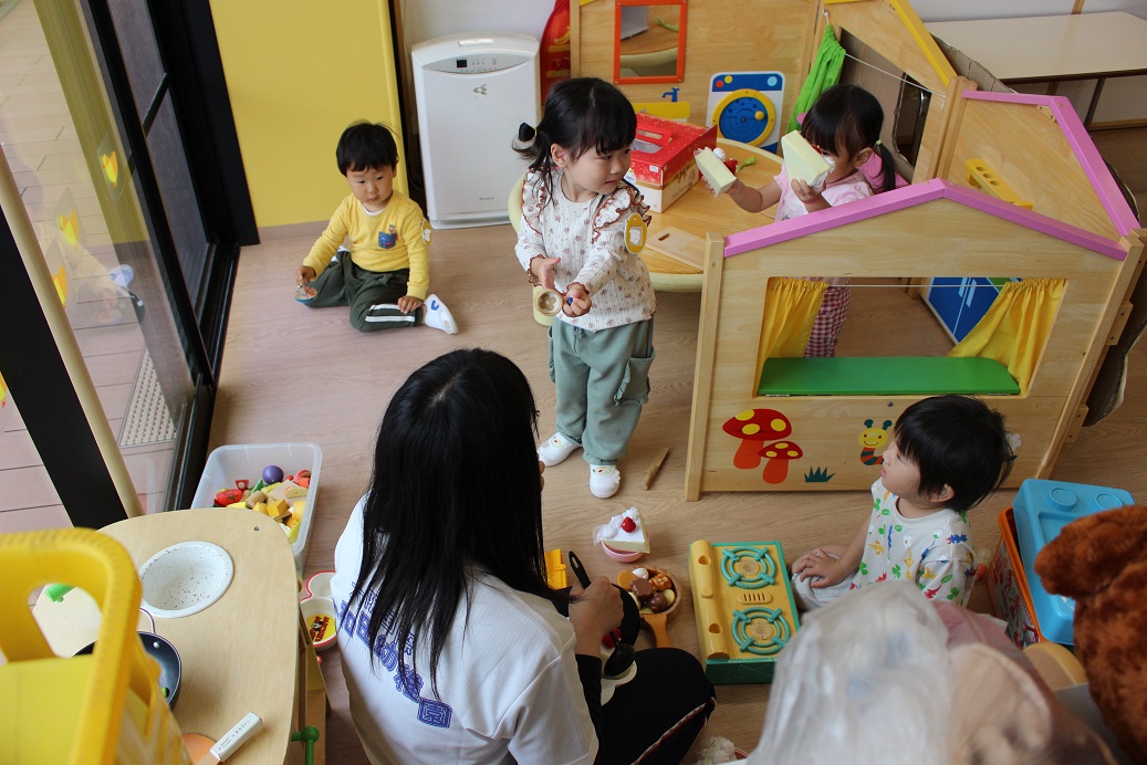 乳児クラスの子どもたちと一緒に遊ぶ予定になっています。