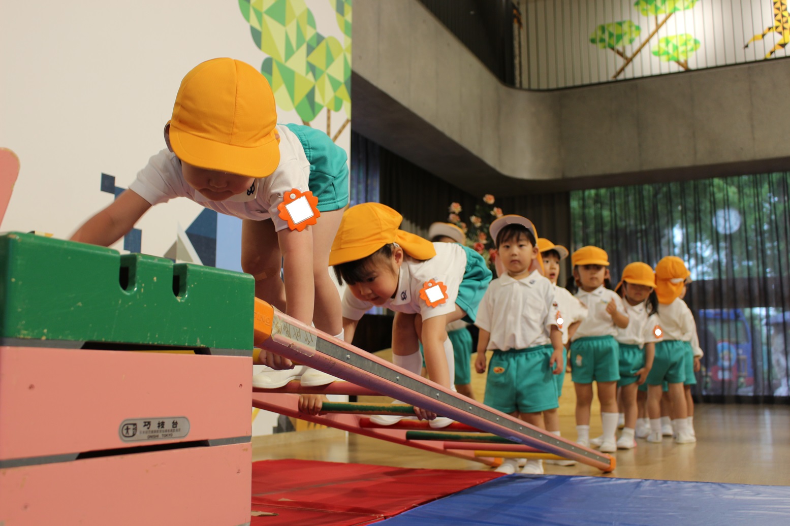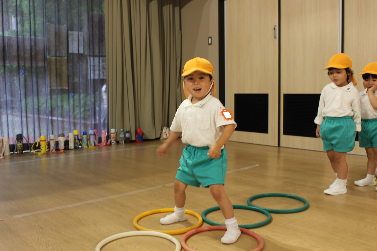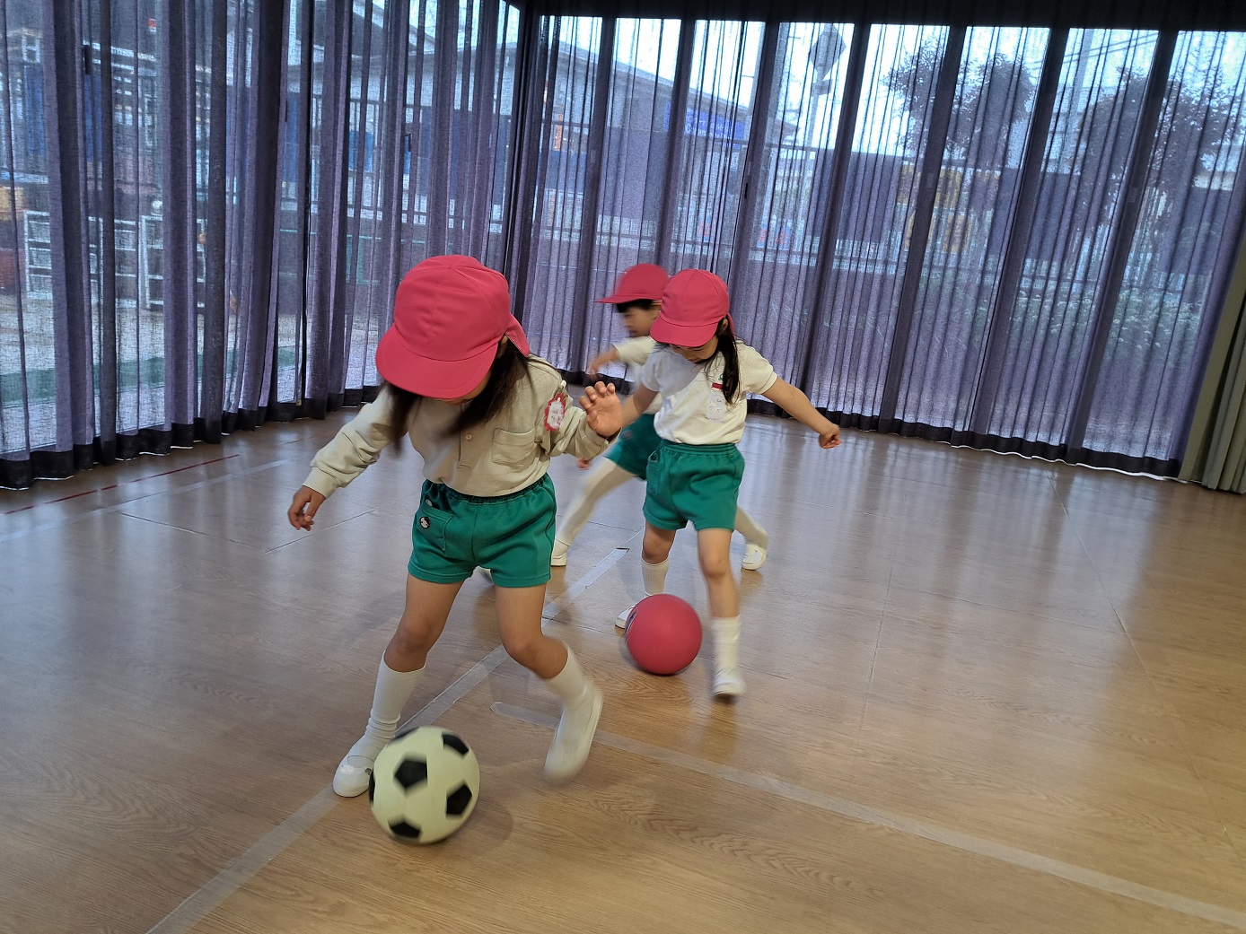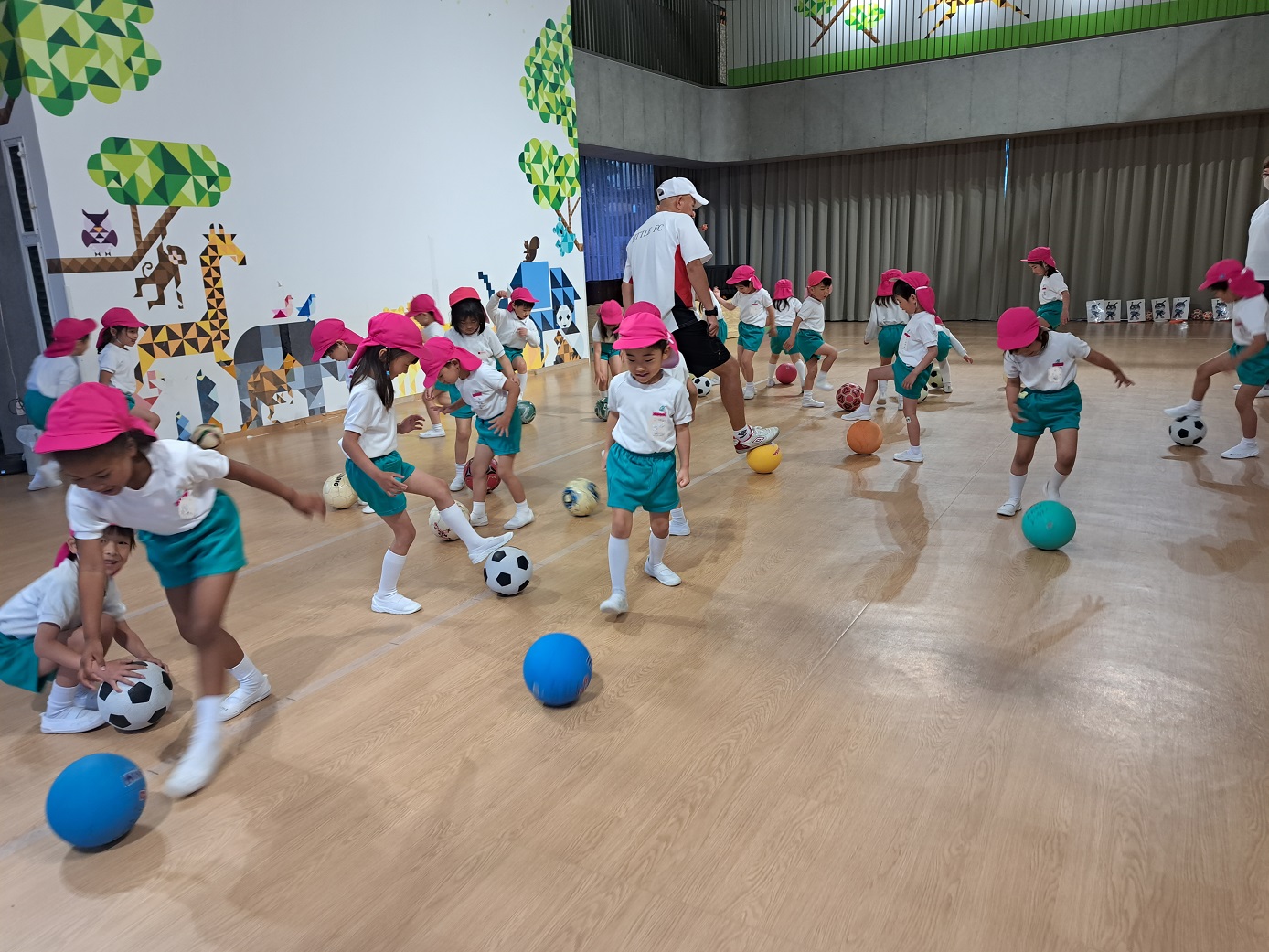 年長組になってはじめてのサッカーは雨だったので、今回は幼稚園ホールで行ないました!