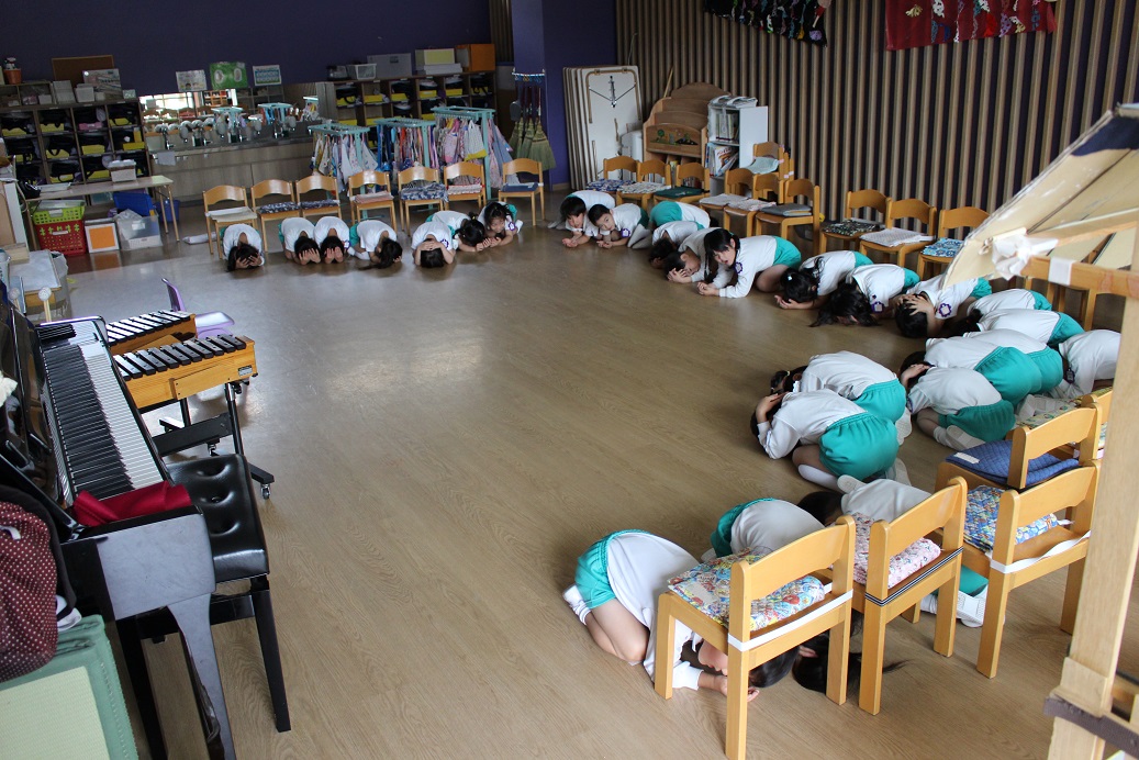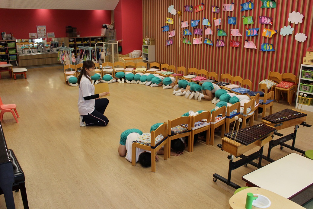 5月16日今回は、地震から身を守るための避難訓練を各保育室で行いました。