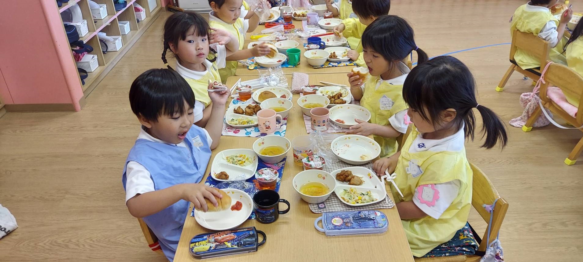 「おにぎりの中に〇〇が入ってた!」と、会話を楽しみながらおにぎりを食べていました!