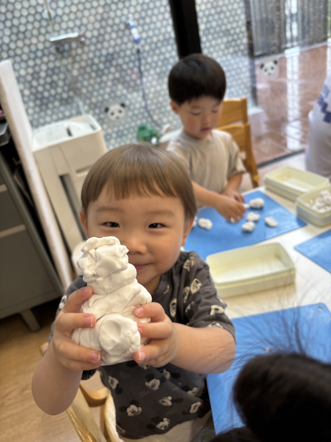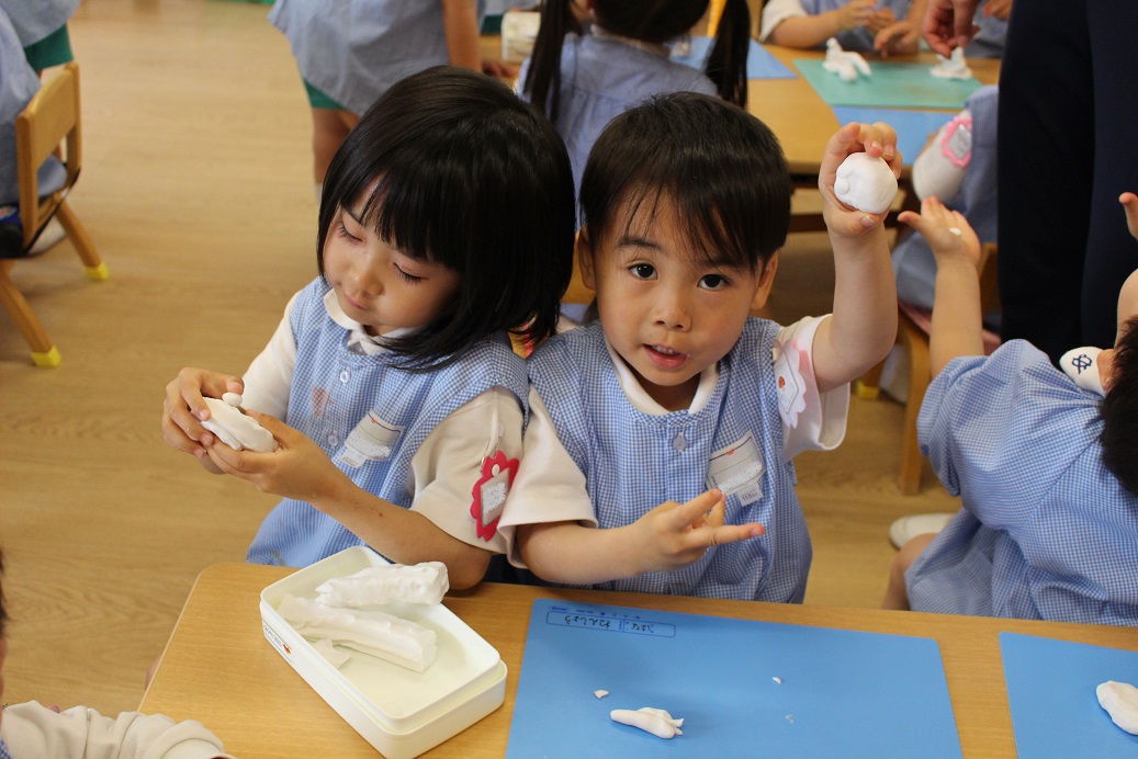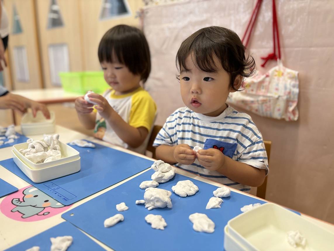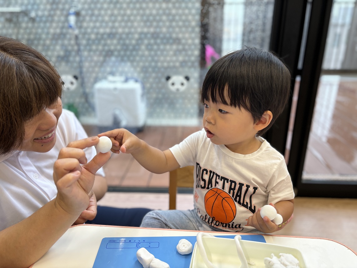 5月28日、ぱんだ組がはじめての粘土あそびをしました♪