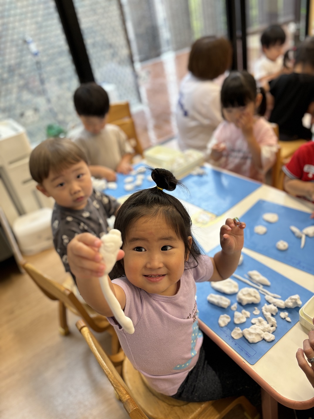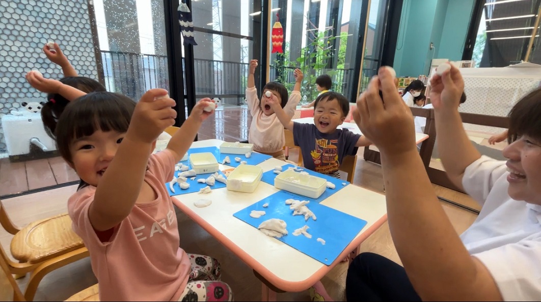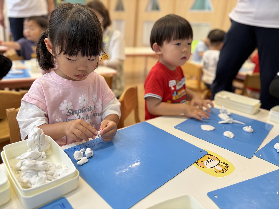 5月28日、ぱんだ組がはじめての粘土あそびをしました♪