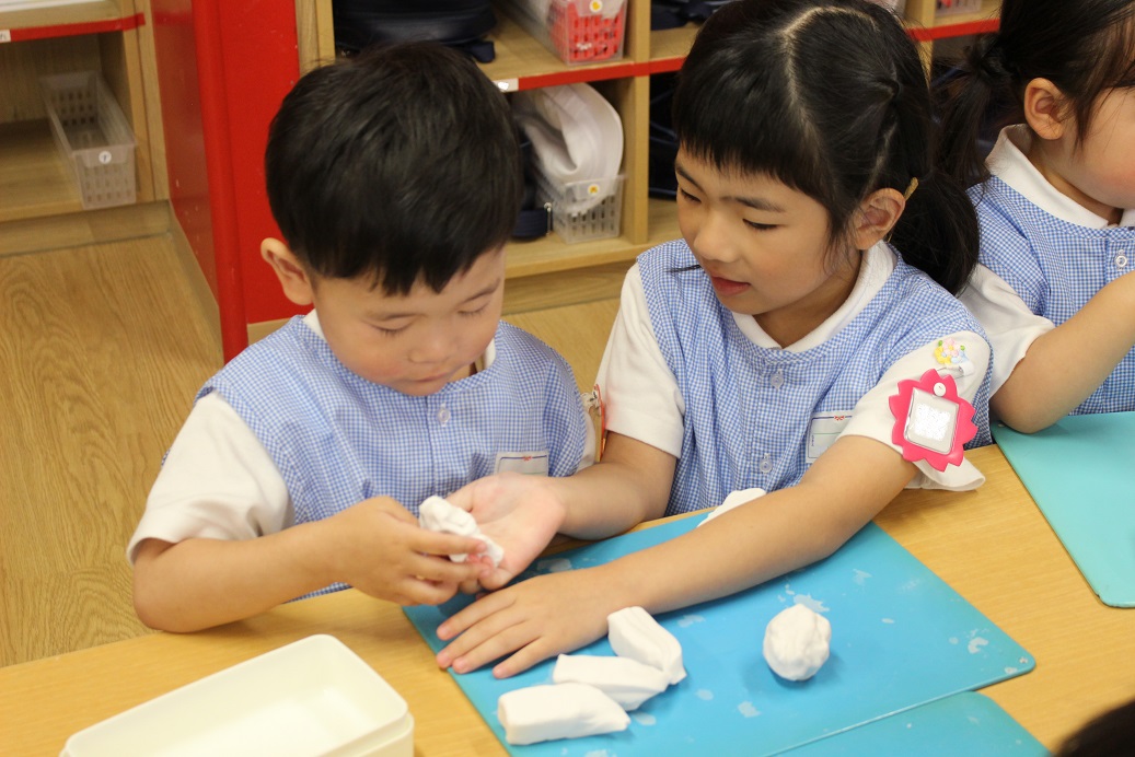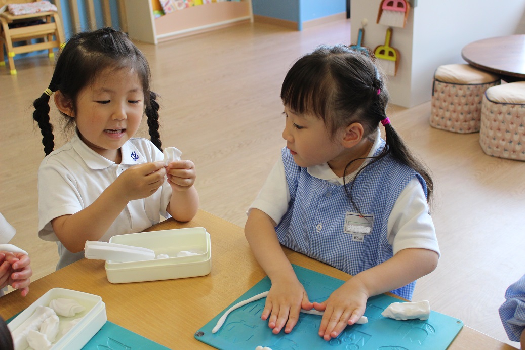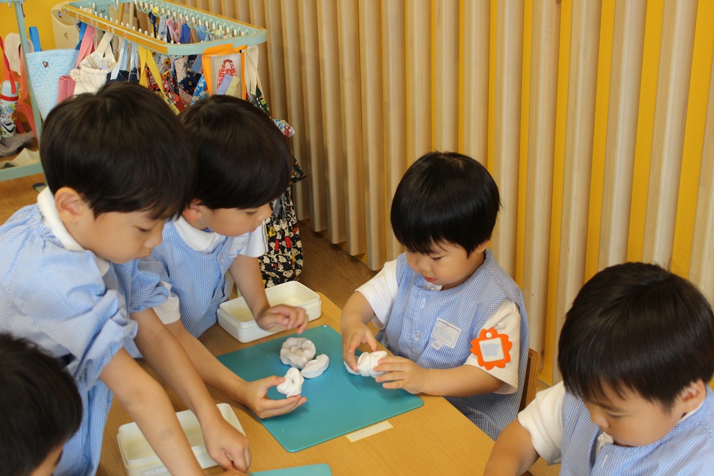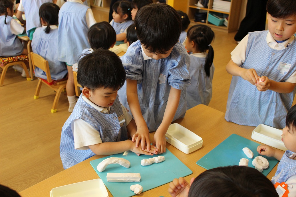 「おだんご!」「へび~!」「みて~!できたよ!」と話しながら