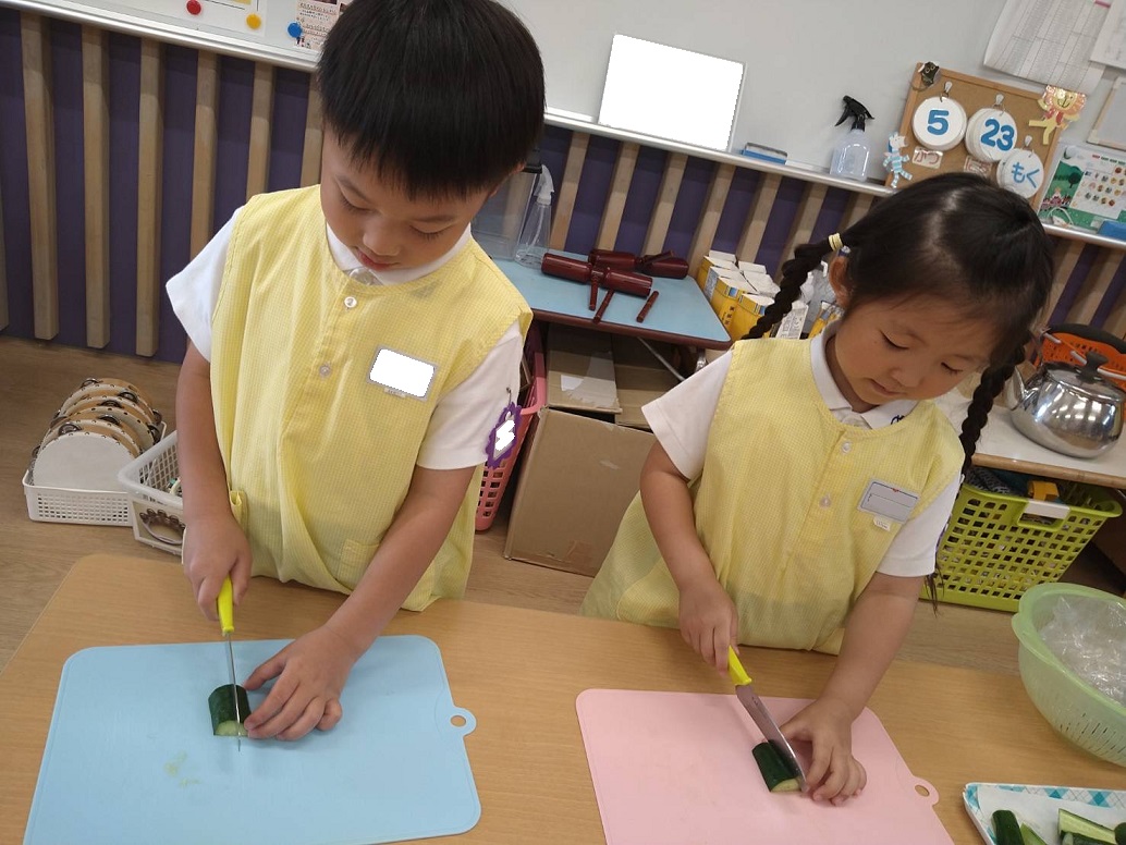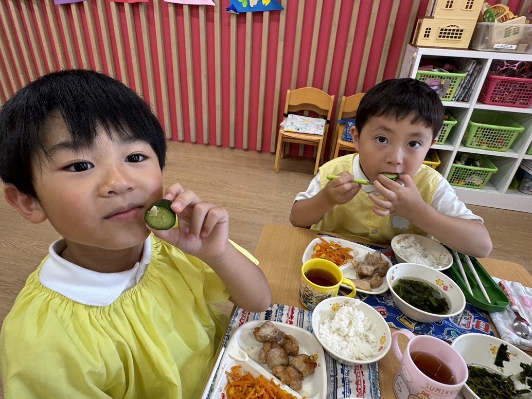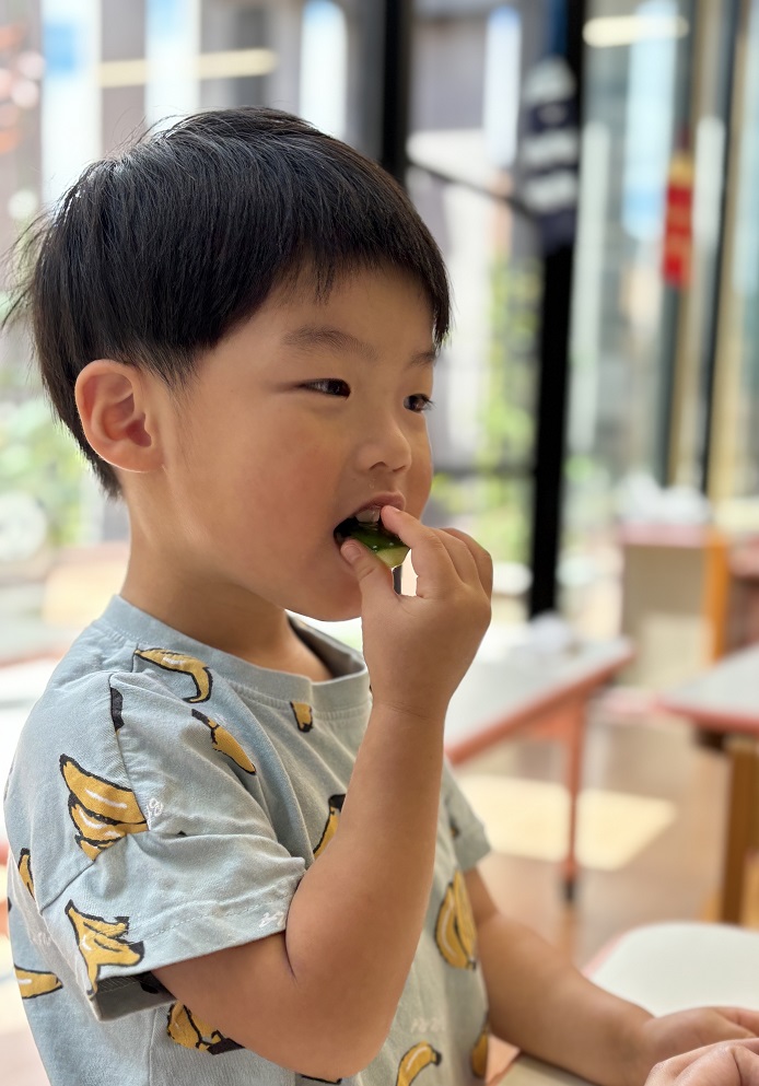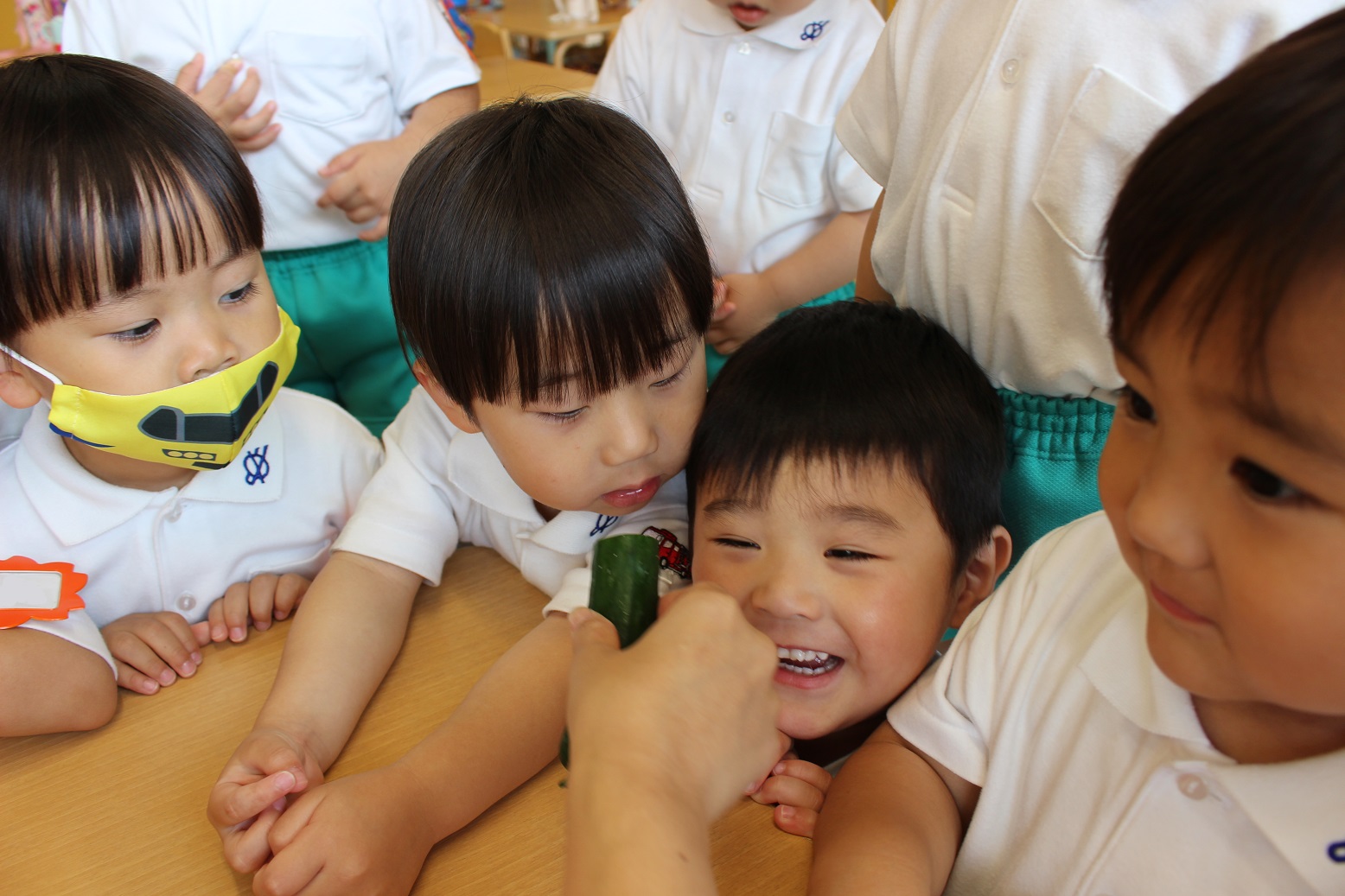「きゅうりのにおいする~!」「おいしそう!」と大盛り上がり!