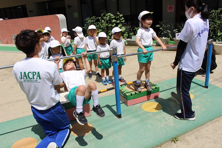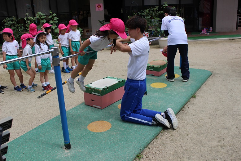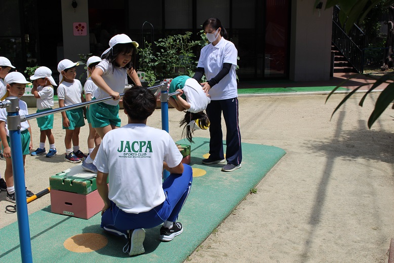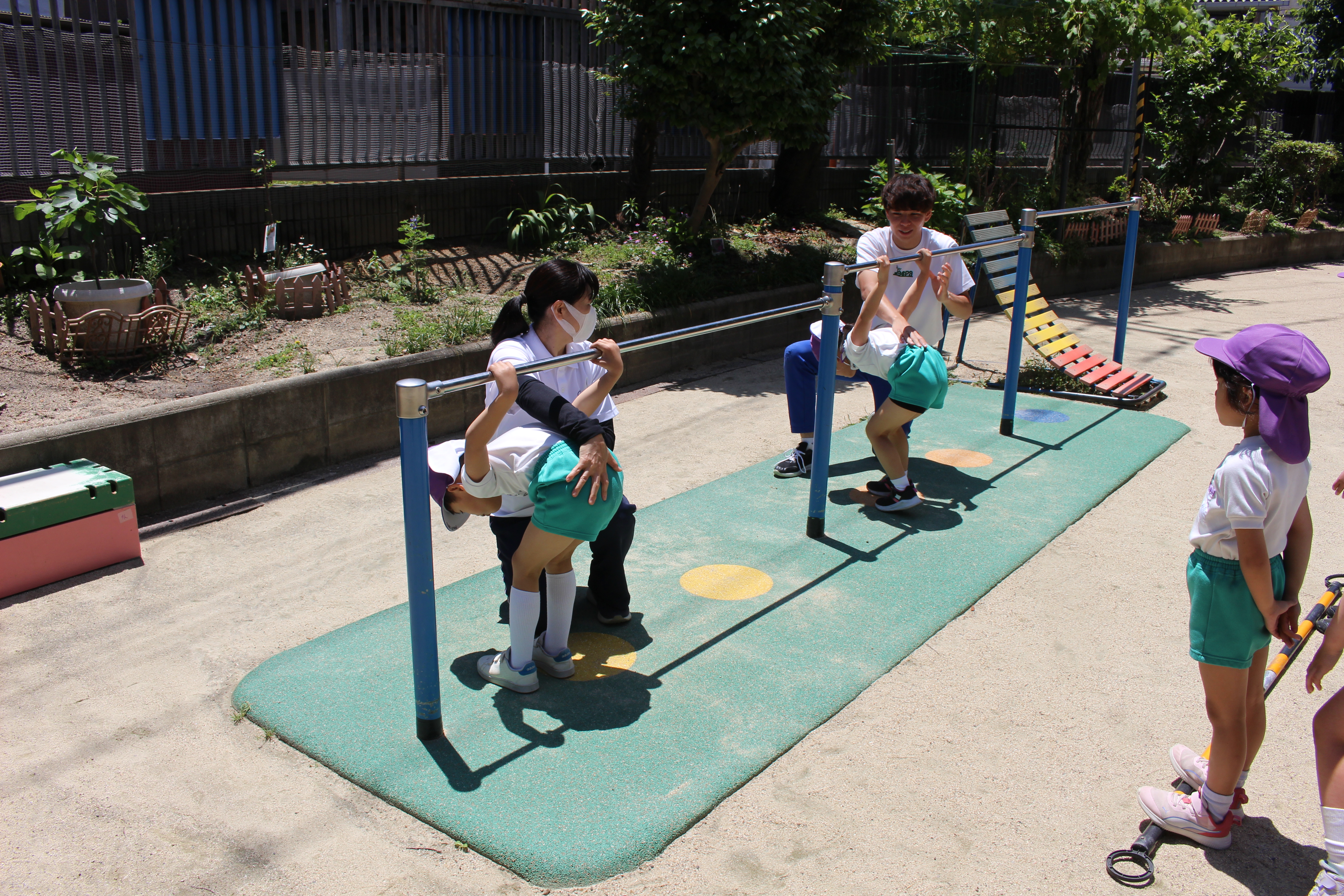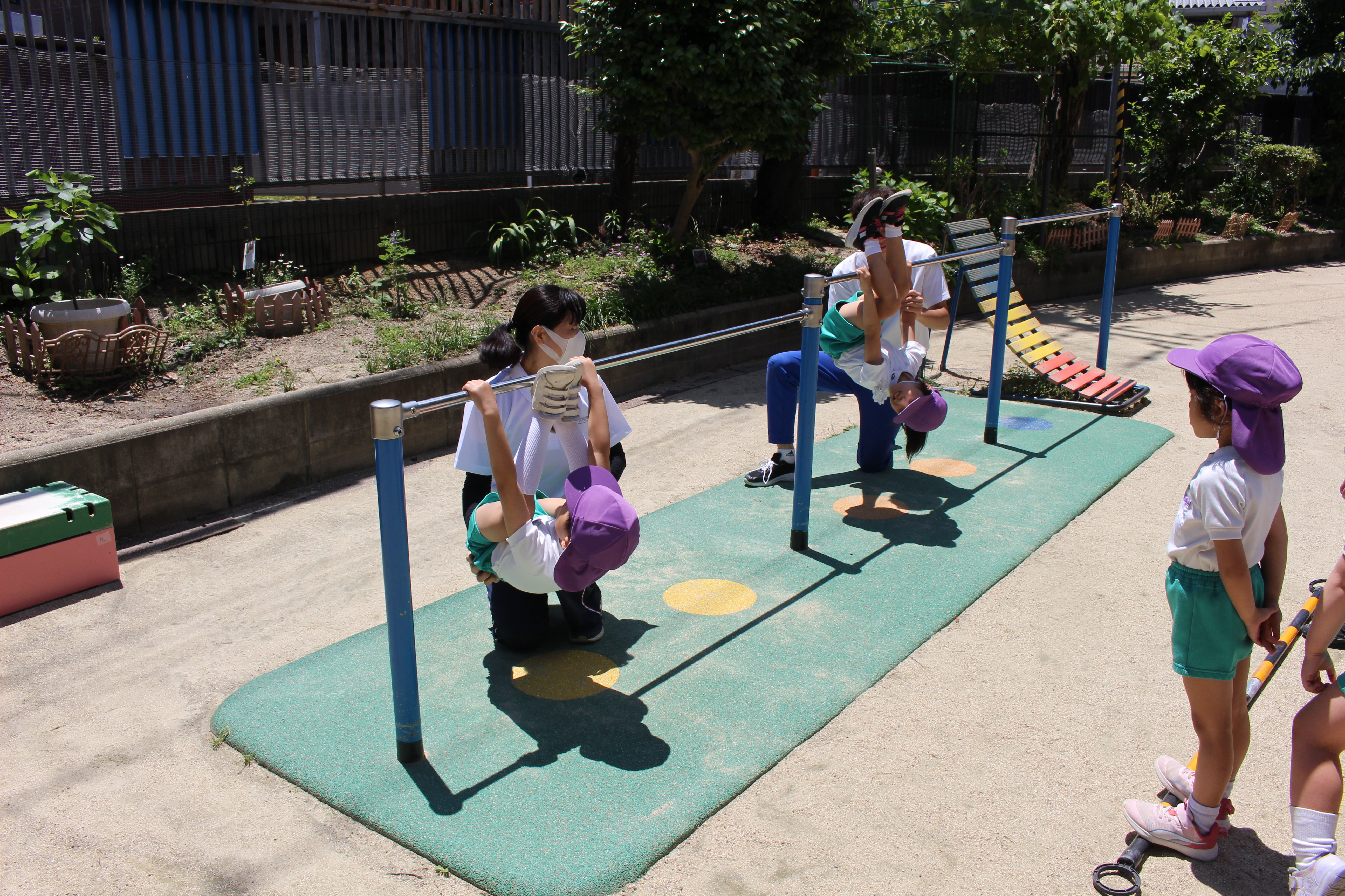 鉄棒をしっかり握ったり、腕が曲がらないように伸ばすことが難しそうでした。