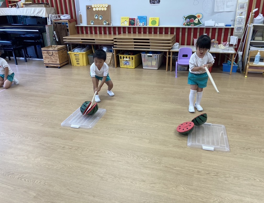 「え~い!!」と力いっぱい棒を振り下ろし、パカッと割ることができると歓声があがっていました(*^^)v