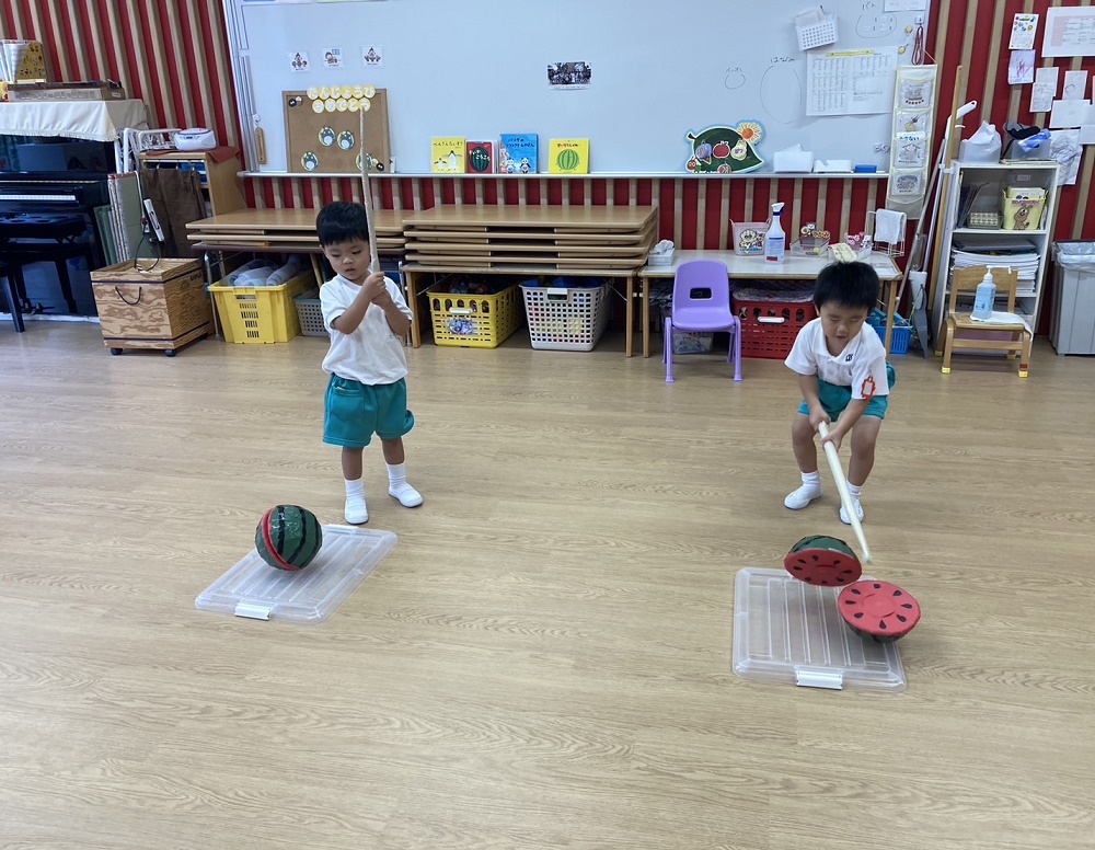 先生お手製のスイカでスイカ割り!