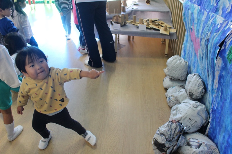 投げたり蹴ったりといろいろな方法でバイキンマンを倒すことを楽しみました♪