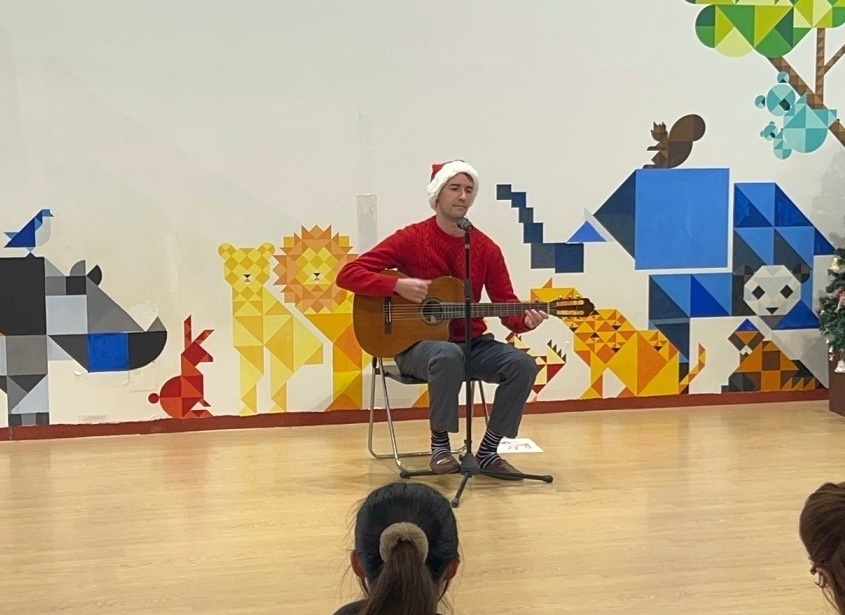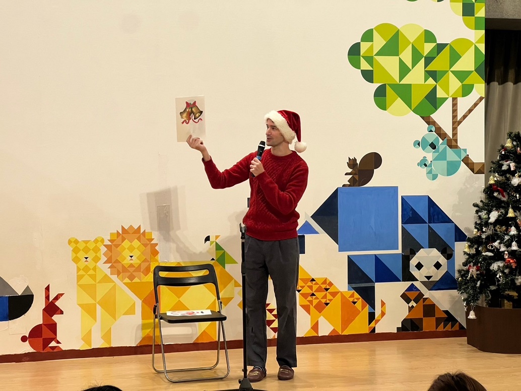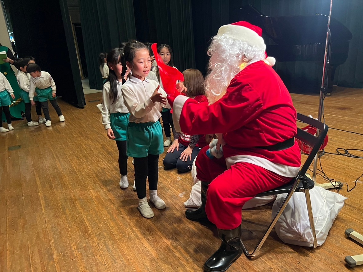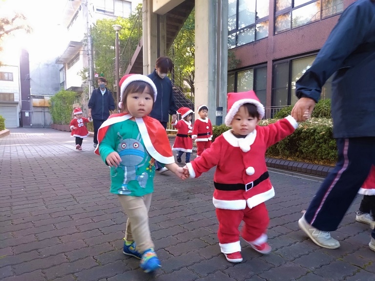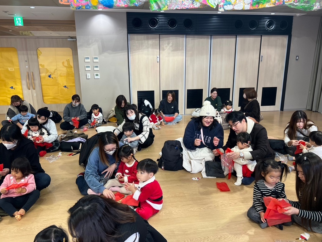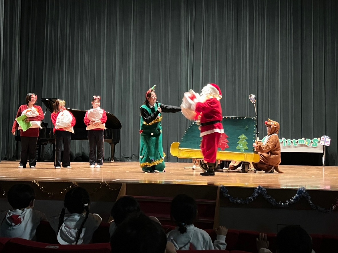 サンタさんと一緒に大学のマスコットキャラクター「キャプテングロービー」が来てくれて、一緒にダンスを踊って楽しみました♪
