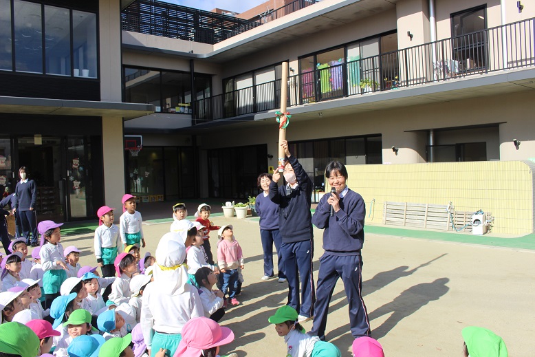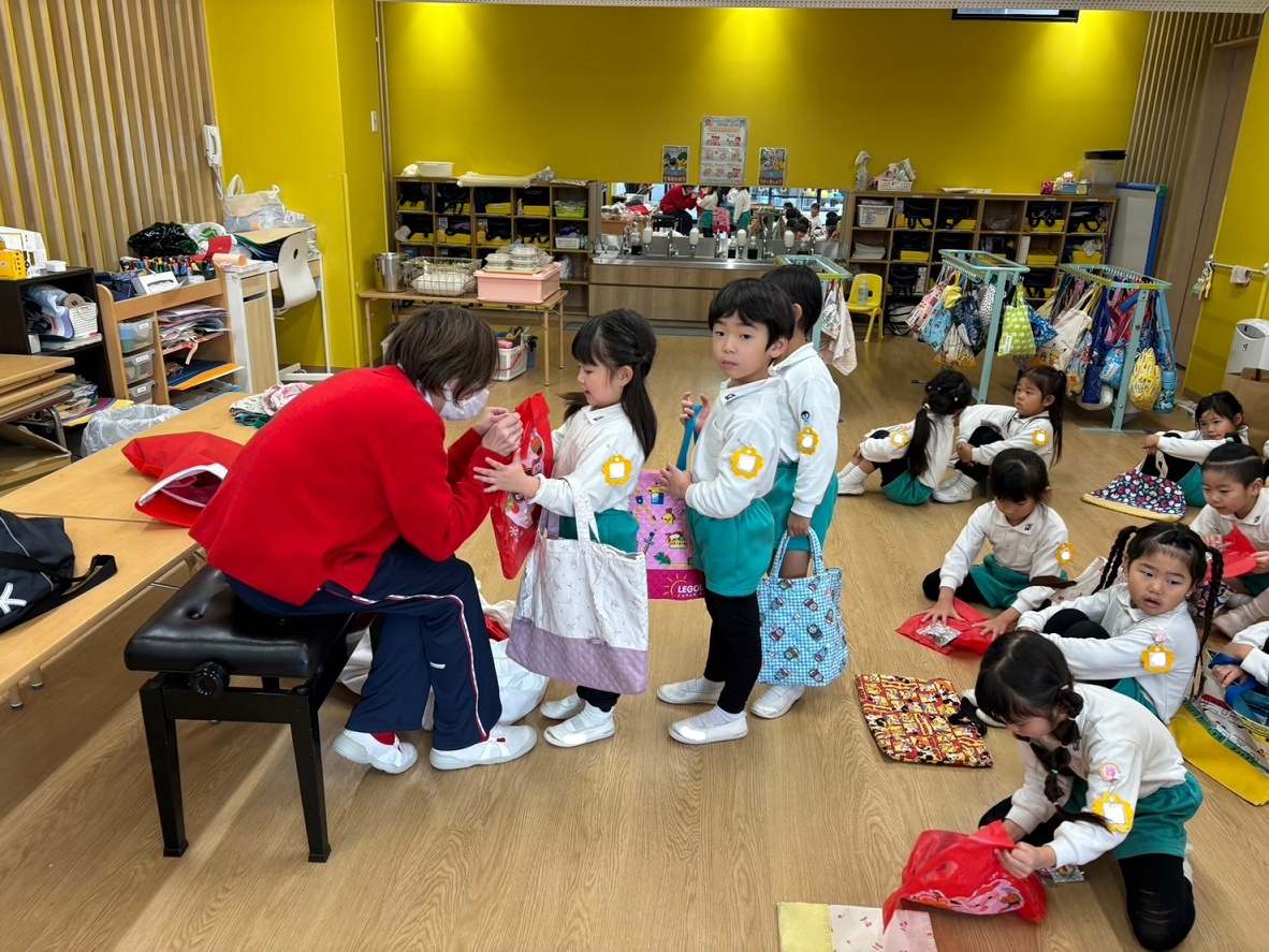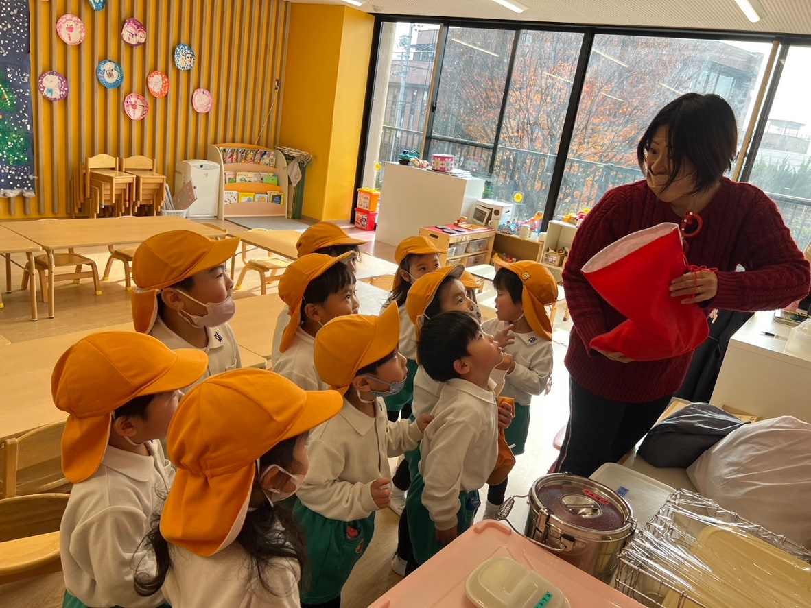 「どうぞよいお年をお迎えください!」と少し難しい挨拶も園長先生に教えていただき、みんなで気持ちの良い挨拶で終えることができました。