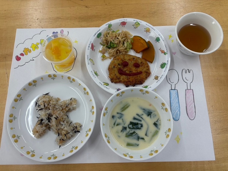 飛行機型のごはんやクリスマスツリーをモチーフにしたサラダなど、見た目もかわいい食事を楽しそうに食べていました♪