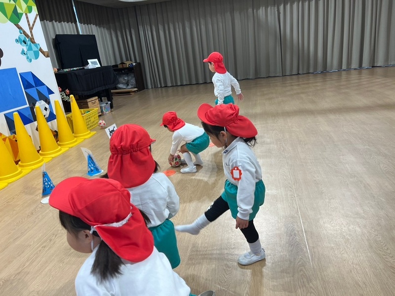 サッカー指導や体操がある週は、お着替え袋に体操服を入れておいていただくようお願いいたします。