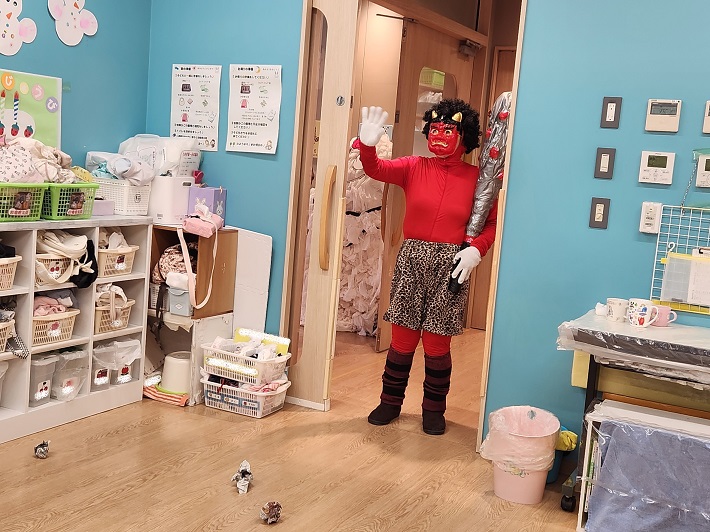 ついに鬼がホールや園庭にもやってきました!