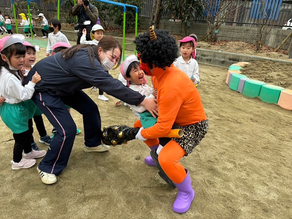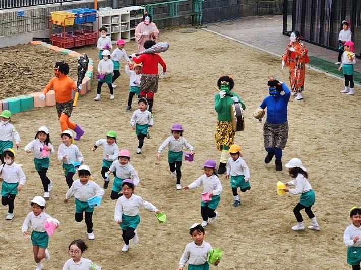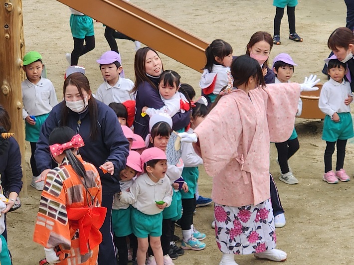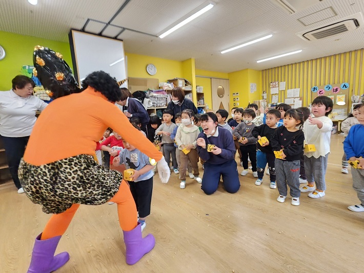 鬼の姿を見た子ども達は、びっくり!