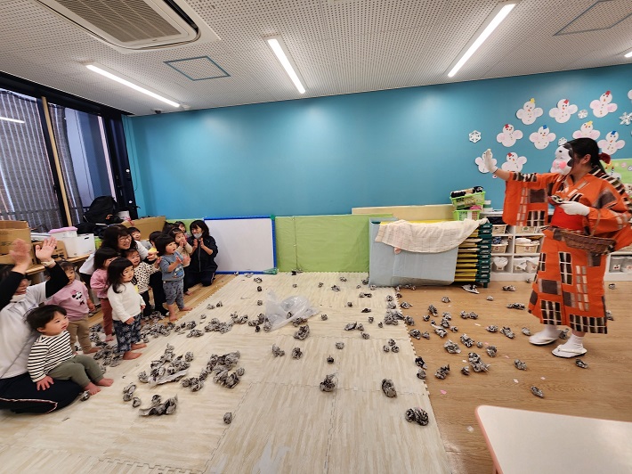 3/4(火) 予約なしで乳児クラスの子どもたちと劇ごっこを楽しみます。