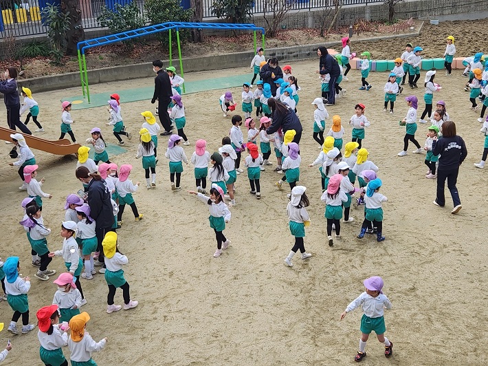 子ども達は、落ち着いて先生の話を聞き、安全に避難することができました。