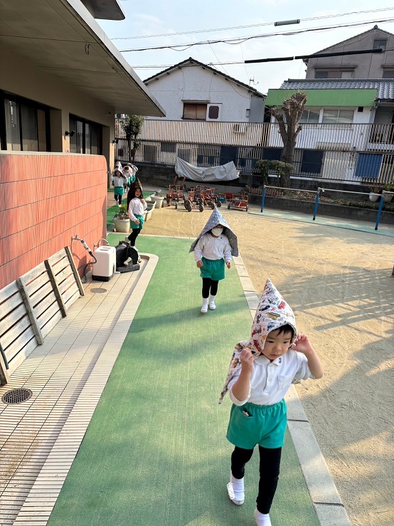 2月3日 朝から『今日、鬼来るの~?』 『鬼来たら、どうしよ~』と、心配そうにしていた子ども達。