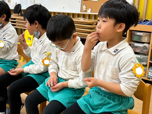 年長組と年中組の子ども達は、年の数だけ豆を食べました♪