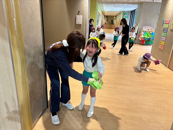 鬼がこわくてしかたがない子ども達は、鬼が来ないセイフティーゾーン(職員室)があります。