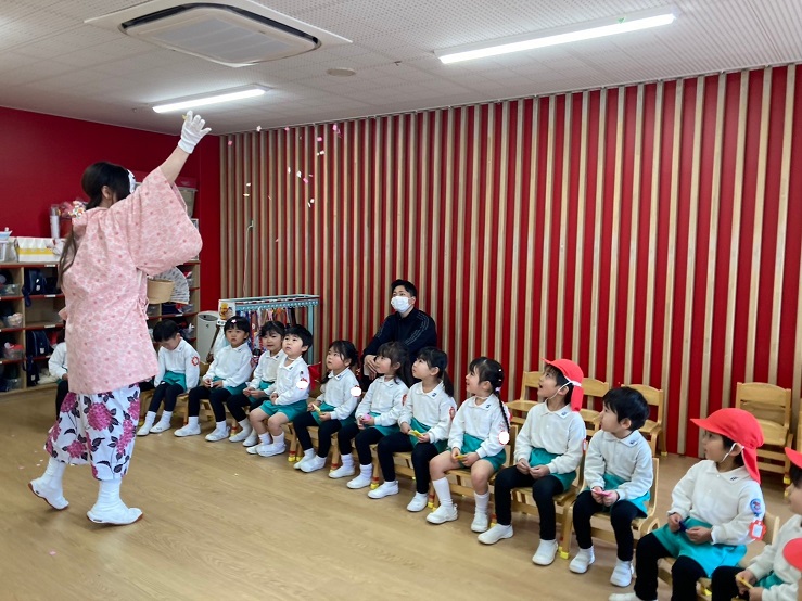 そこへ"お福ちゃん" が遊びに来てくれて鬼からみんなを守ってくれました。