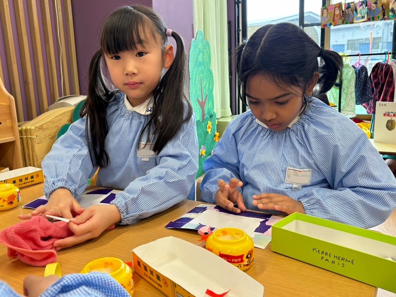 各クラスではひな人形の制作に取り組んでいます。