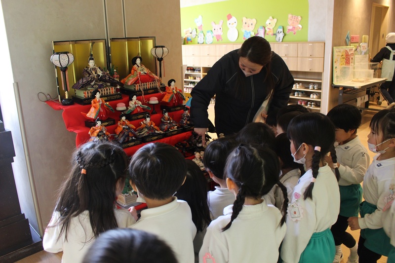 ひな人形は結婚式の様子を表しているのだということを聞くと「知らなかった~!」と驚いていました。
