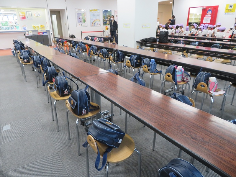 到着したらまずは集合写真を撮るために荷物を置くのですが、何も言わなくてもきちんとそろえてリュックを置いている大和田幼稚園の子どもたち。