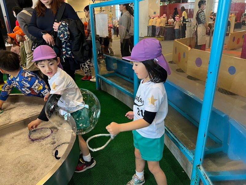 『やってみる階』ではシャボン玉に入ることや、電車に乗ることができるんですよ!