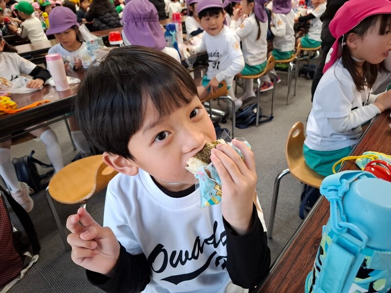 「これ大好きやねん!」と、とても大きなゆかり入りおにぎりを嬉しそうに頬張っている子もいました♡