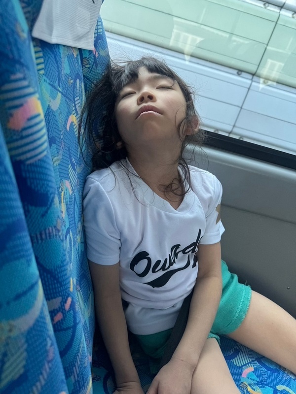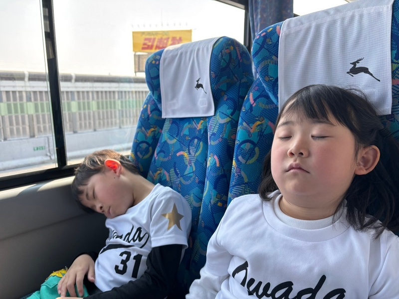 帰りのバスでもまだまだ元気の有り余る子もいれば、乗った瞬間に夢の中...の子もいました。