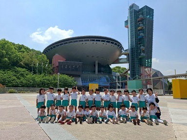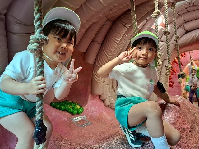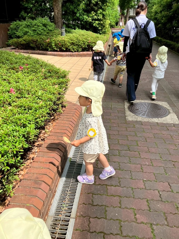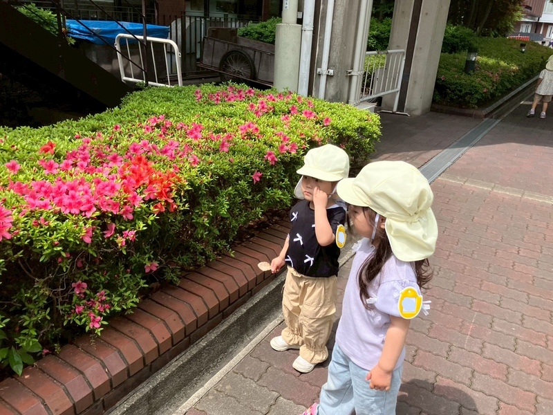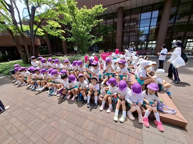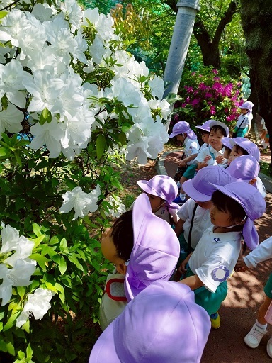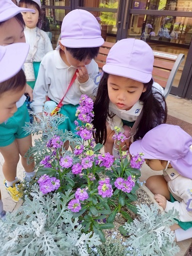 すみれ組さんは、学園内を"色探しゲーム"をしながら探検しました!