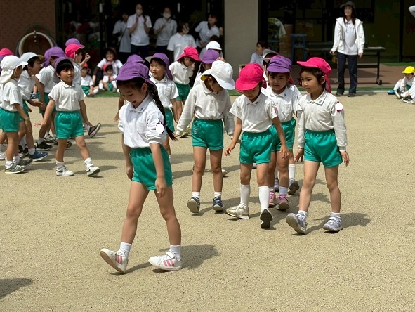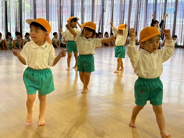 年少組さんは、年長組さんの格好いいリズムを見ました。