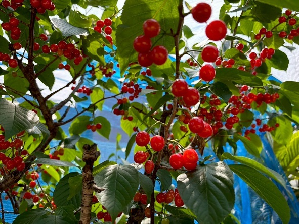 事務の方たちが枝にたわわに実っているさくらんぼを採ってくれました!